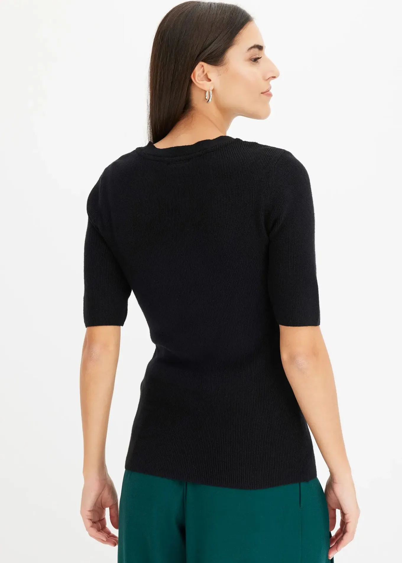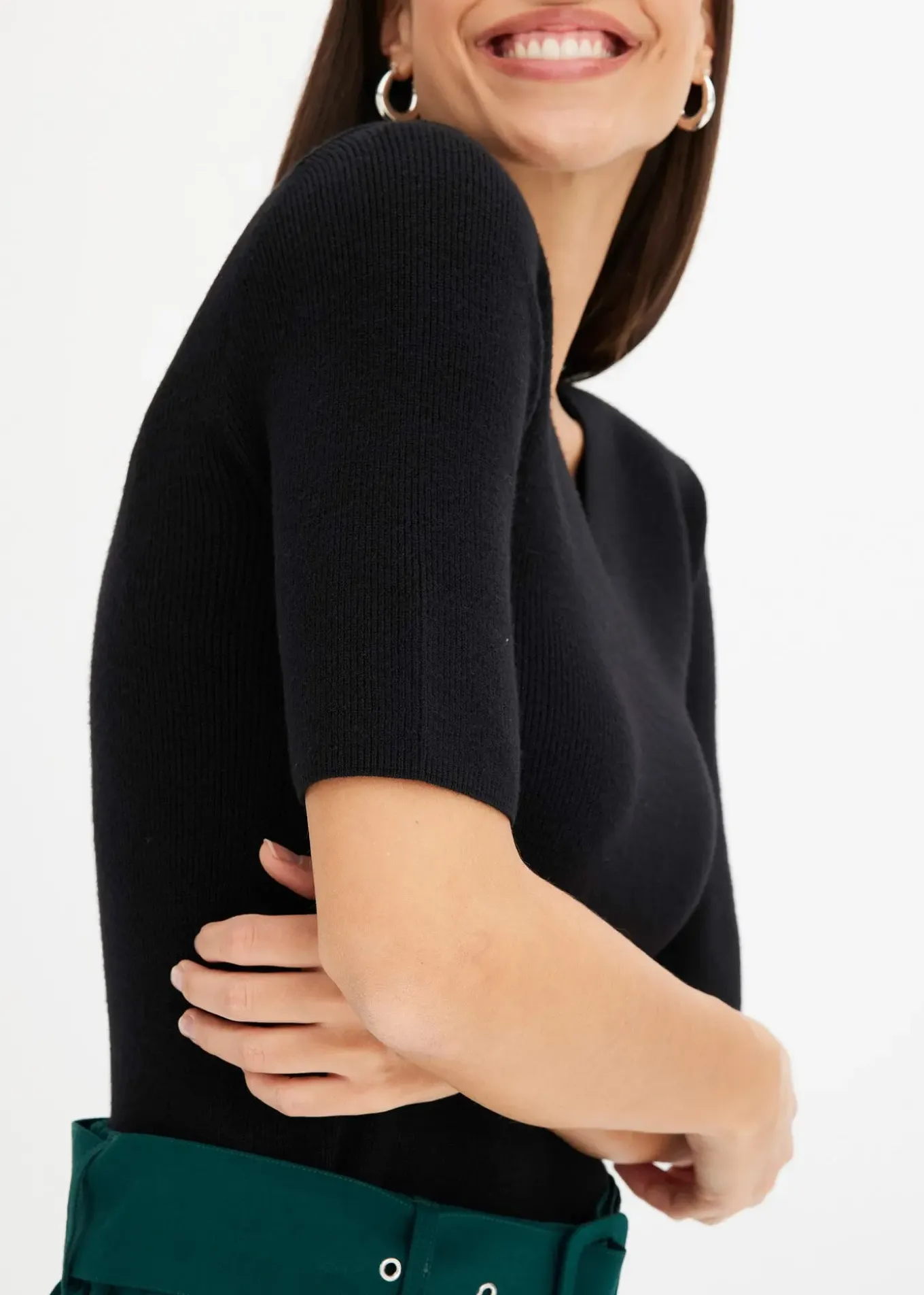Élégant pull côtelé à manches coude
