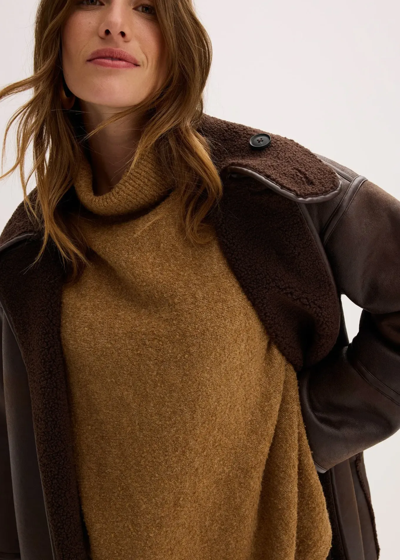 Pull poncho ample et asymétrique à franges et col roulé