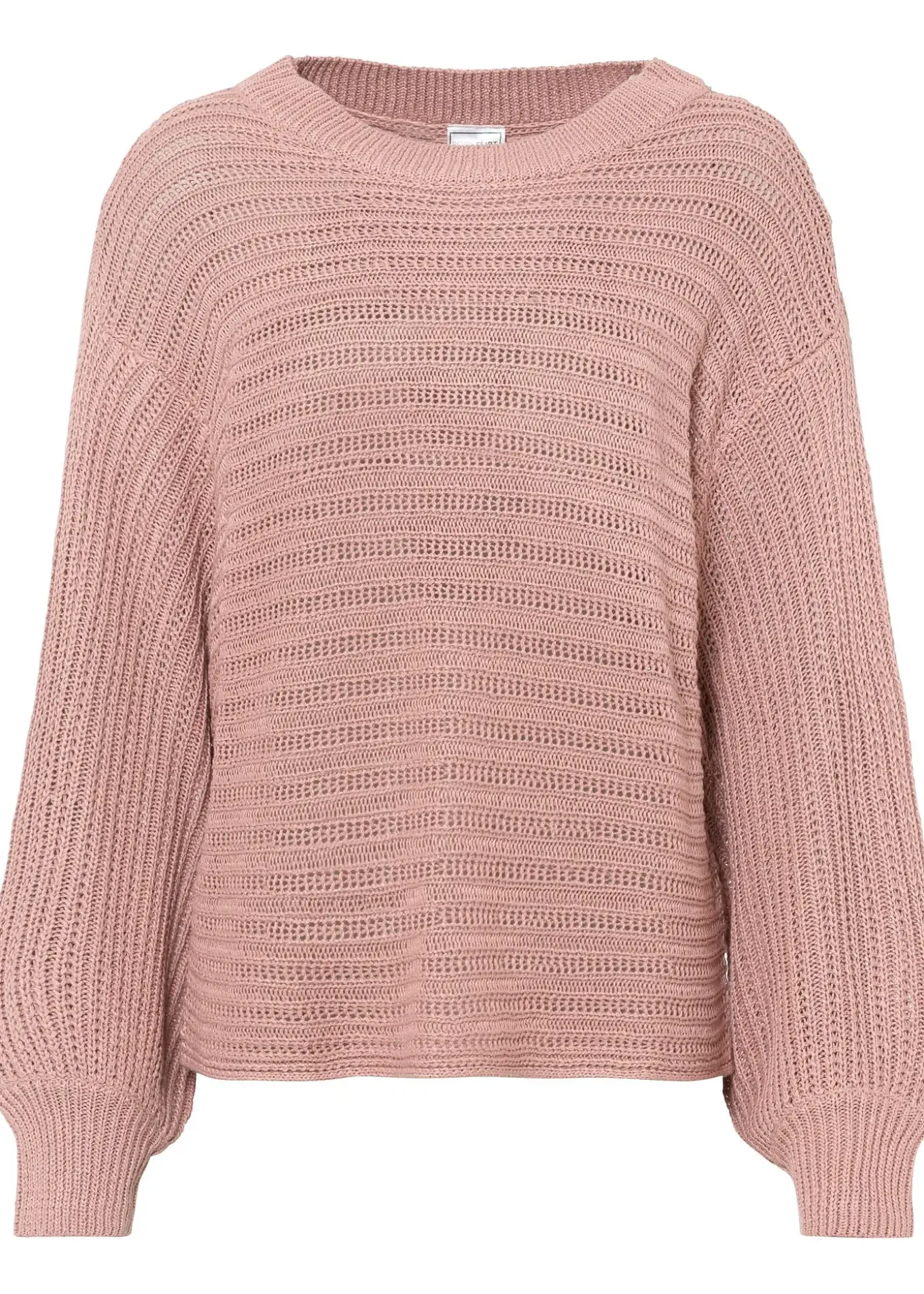 Pull oversize moderne en maille ajourée avec une encolure ronde. Long. env. 72 cm.