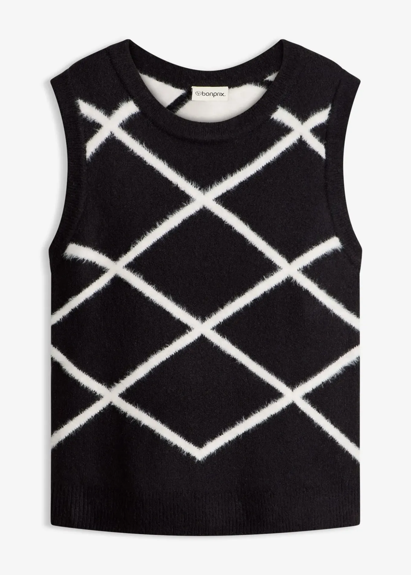 Pull sans manches stylé à motif graphique en maille poilue