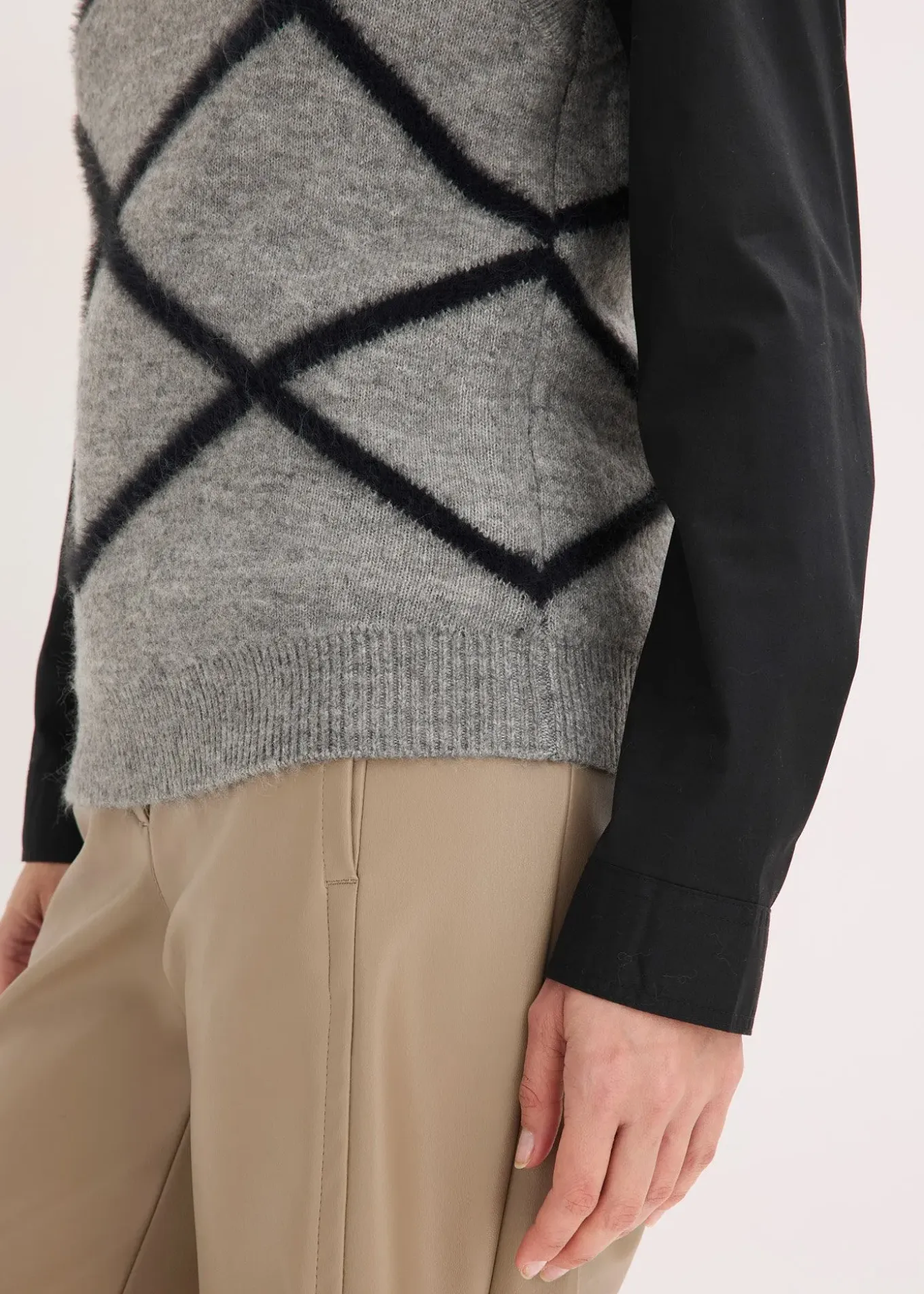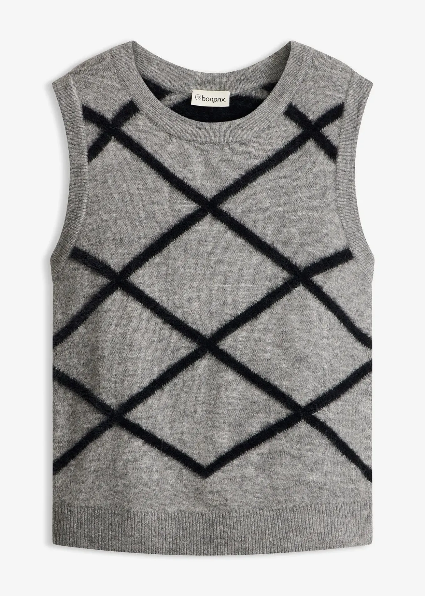 Pull sans manches stylé à motif graphique en maille poilue