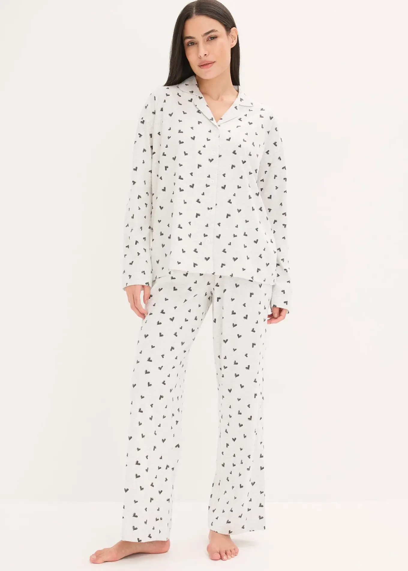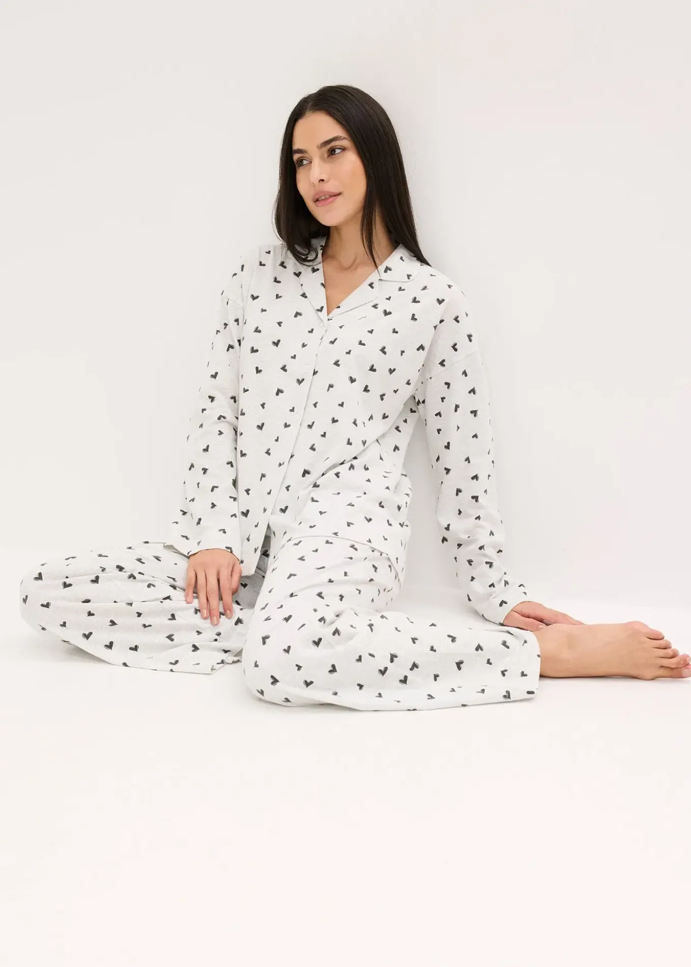 Pyjama oversize à imprimé cœur et manches longues