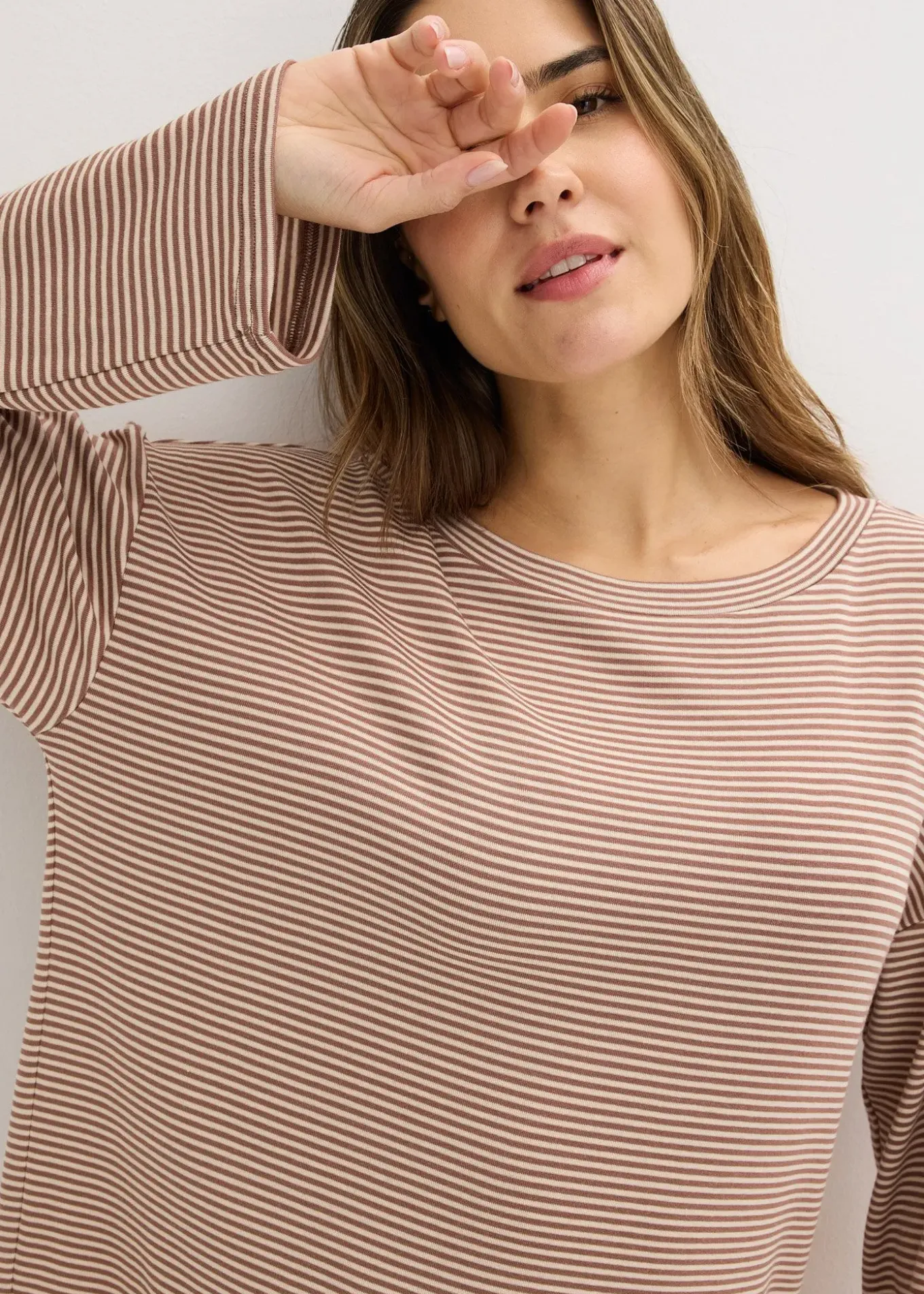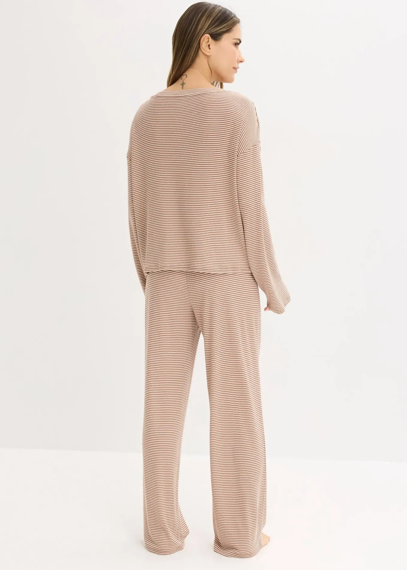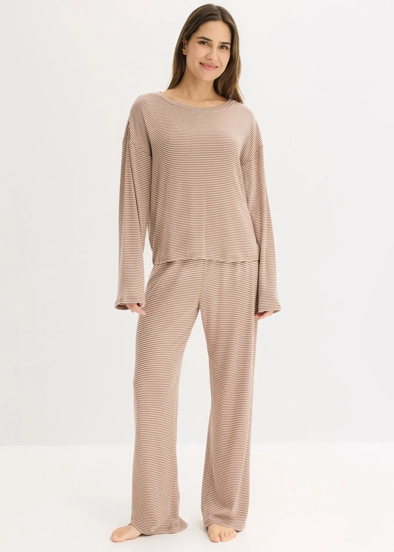 Pyjama mode composé d’un haut manches longues et amples ainsi que d’’un pantalon large à taille haute