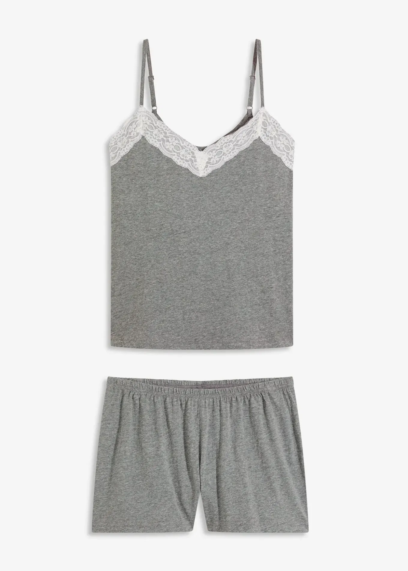 Pyjashort confortable avec top à fines bretelles réglables et encolure V bordée de dentelle