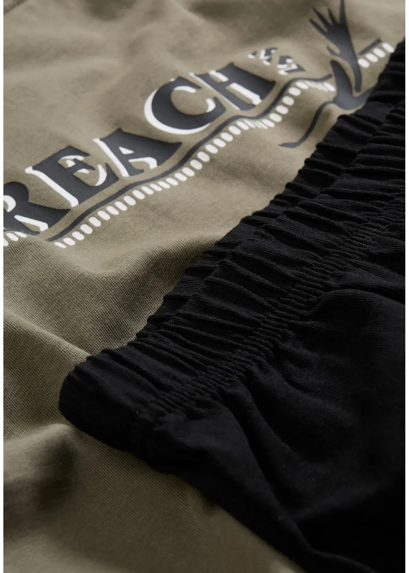 Pyjashort sportif 2 pièces 100% coton pour homme de la collection bpc. T-shirt à inscription sur la poitrine, col en double épaisseur, short ample à taille élastiquée et motif imprimé sur le côté.