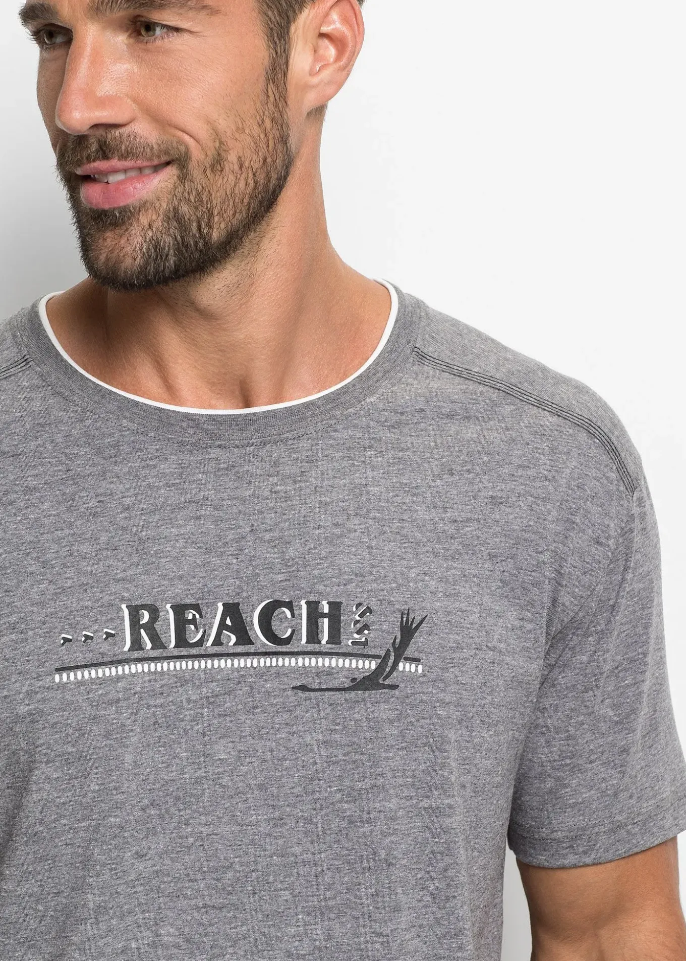 Pyjashort sportif 2 pièces 100% coton pour homme de la collection bpc. T-shirt à inscription sur la poitrine, col en double épaisseur, short ample à taille élastiquée et motif imprimé sur le côté.