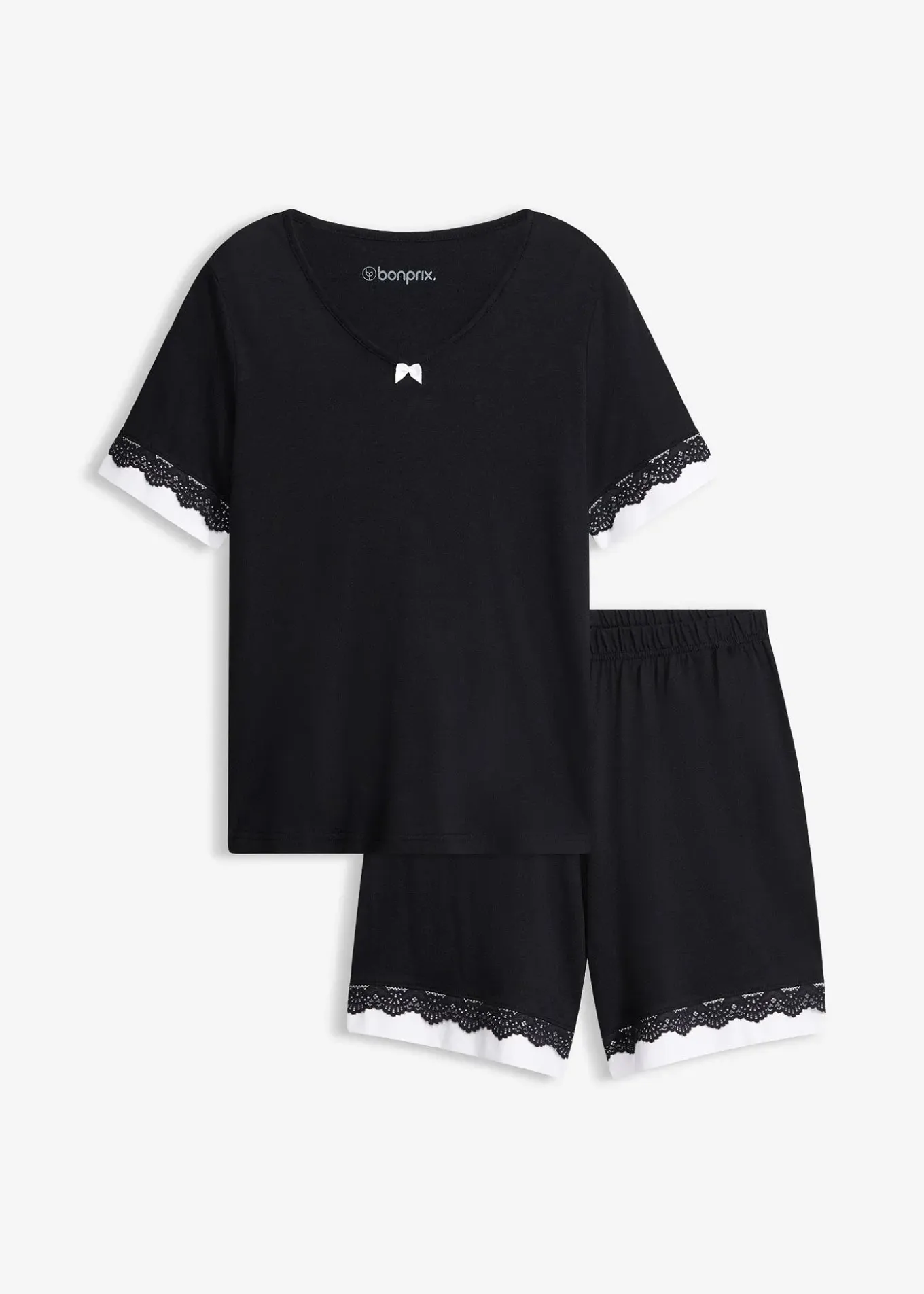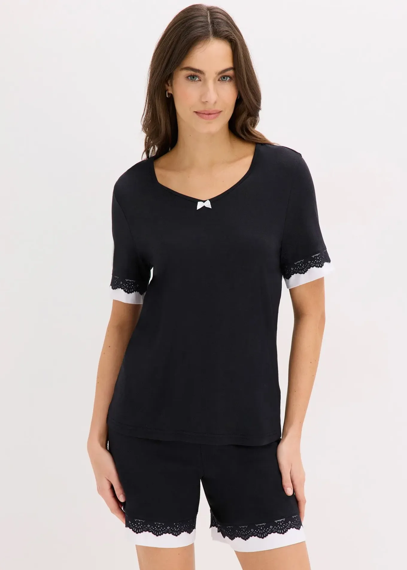 Pyjashort féminin avec T-shirt et short long, jolis empiècements de dentelle