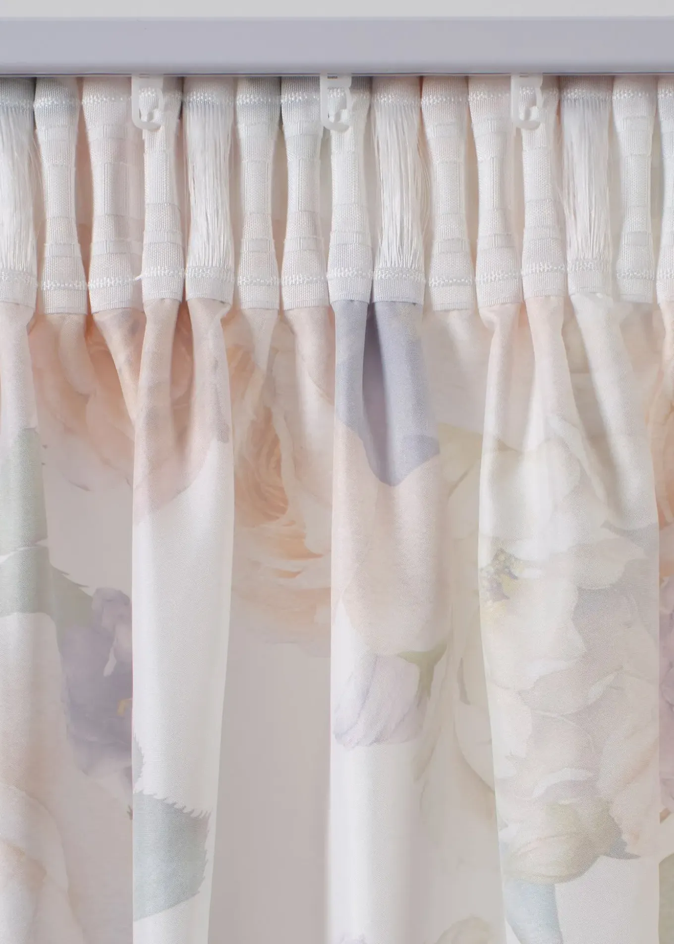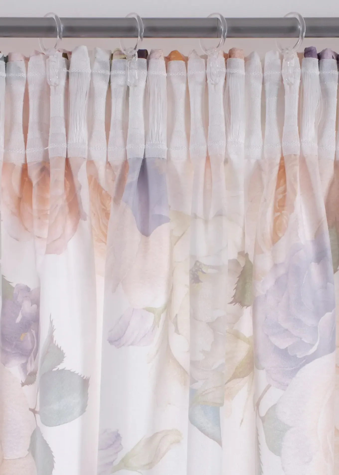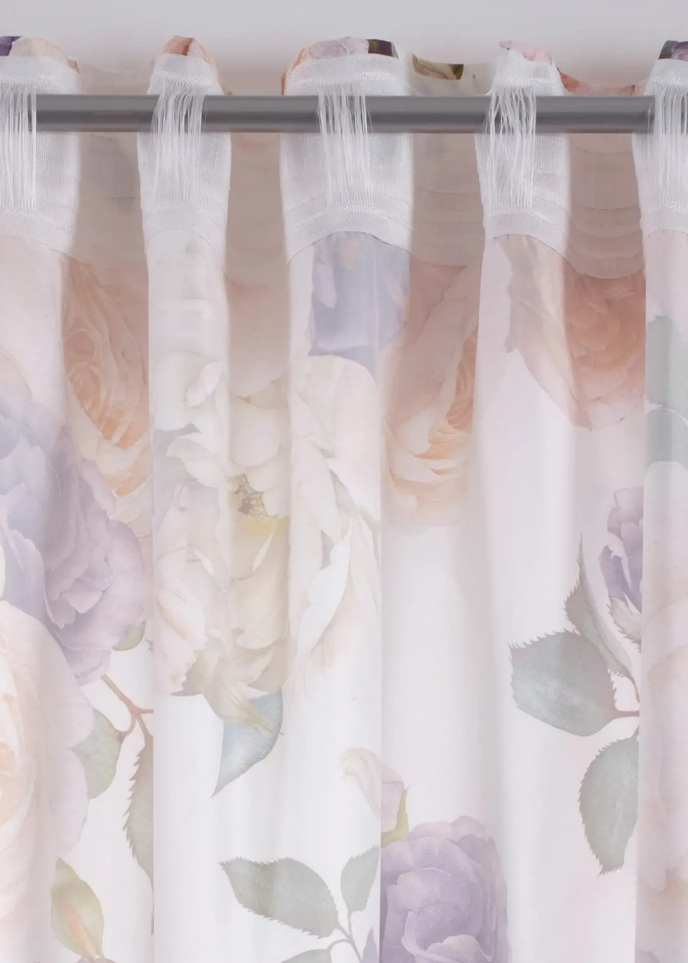 Rideaux au design floral romantique imprimé sur un tissu microfibre opaque.