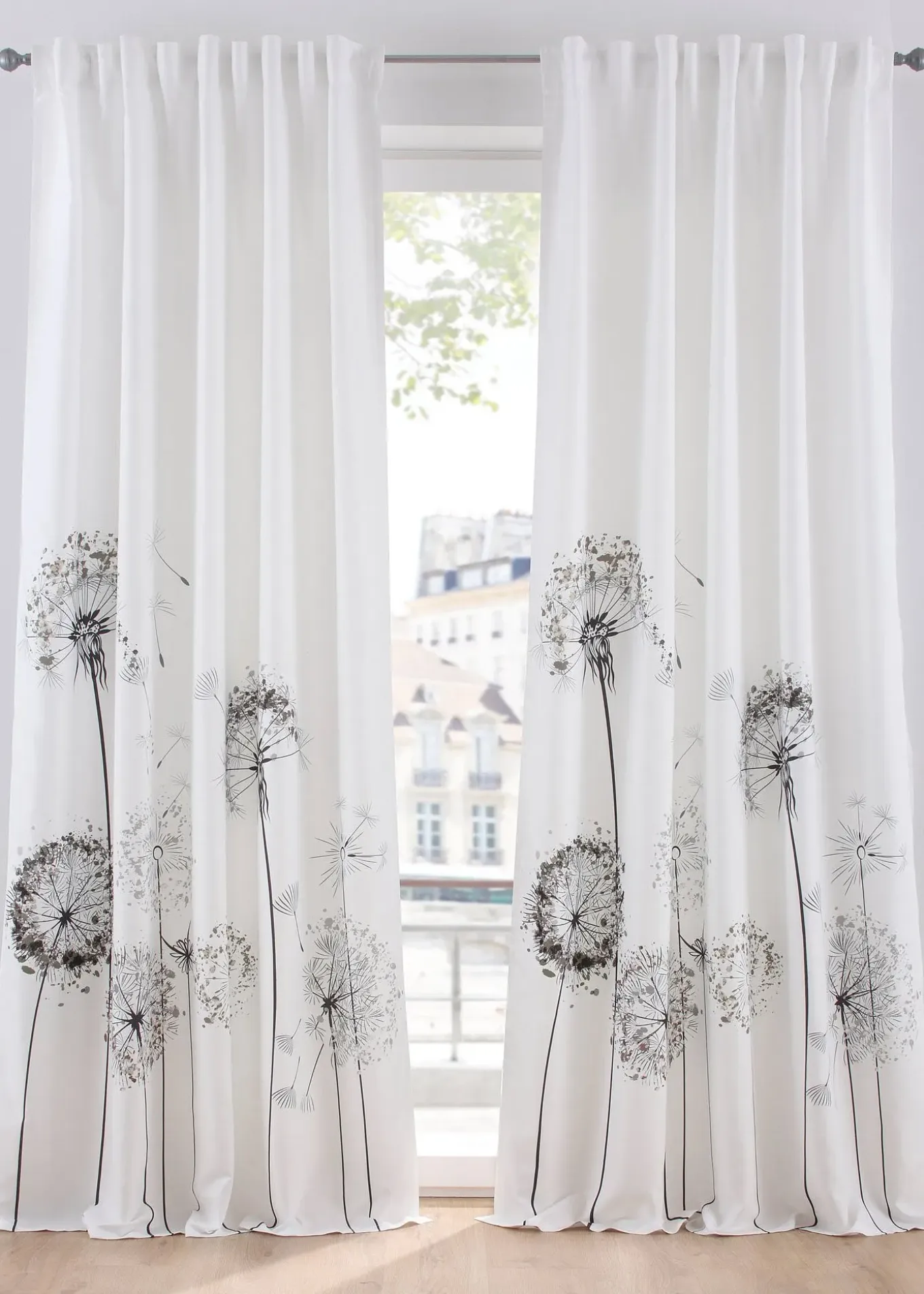 Rideau en matière microfibre de belle qualité. Motif fleurs de pissenlit pour une jolie touche déco à la fenêtre. Les couleurs sobres et modernes se fondent dans de nombreux styles d’intérieur.