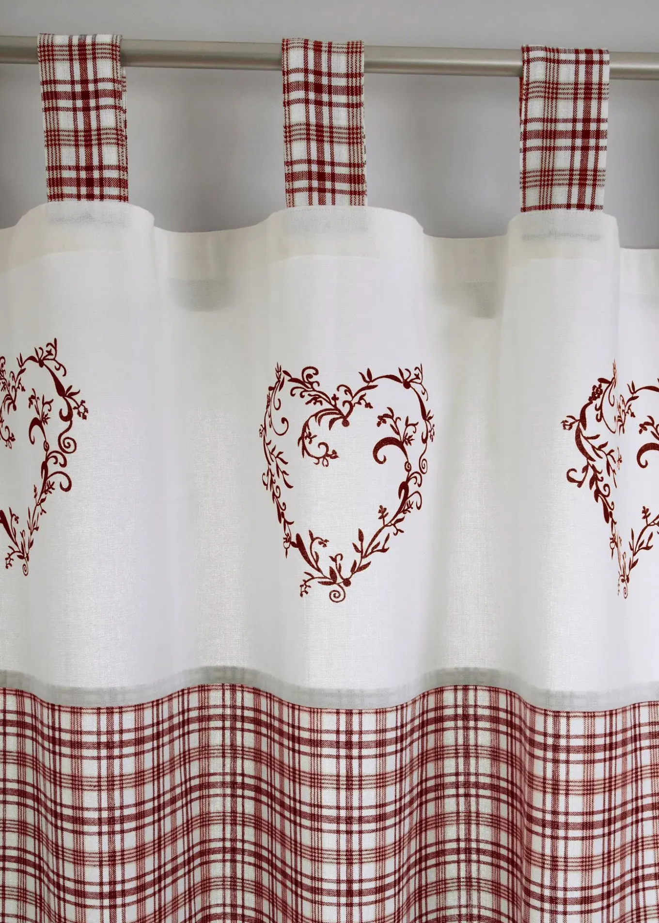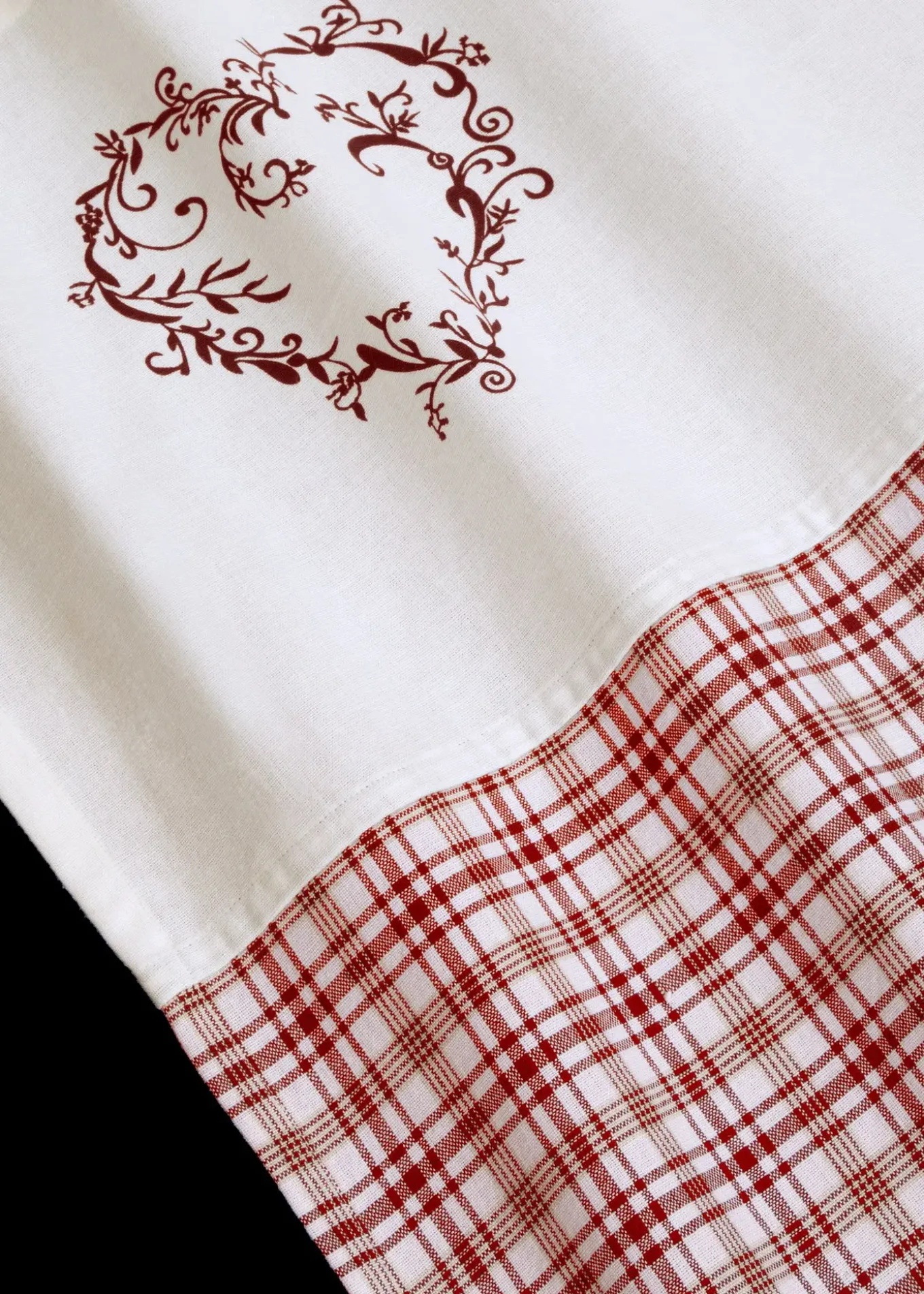 Panneau opaque en coton de qualité supérieure dans un style campagne romantique. Imprimé carreaux intemporel et frise supérieure à motif. Panneau proposé avec une embrasse assortie.