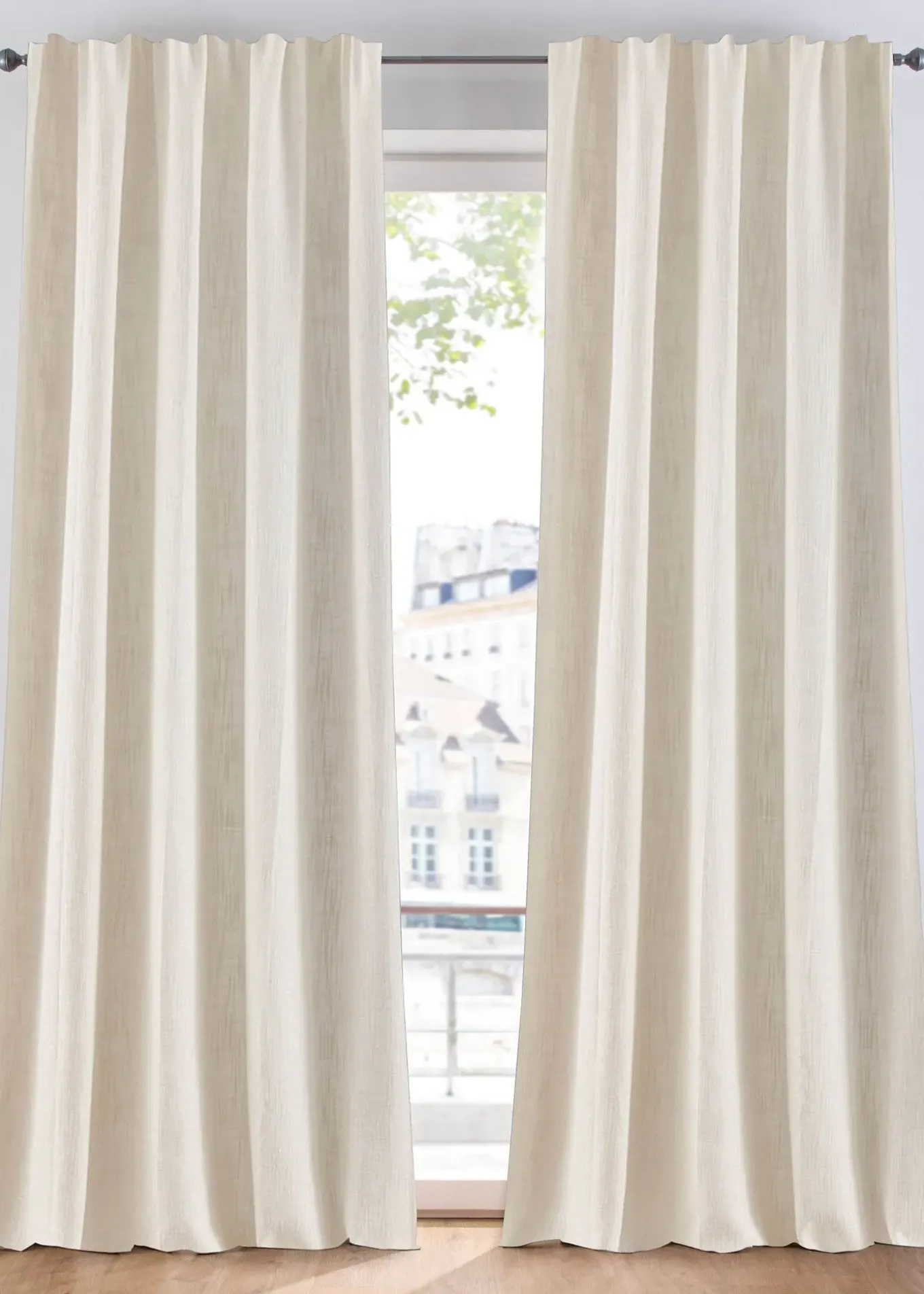 Ce rideau panneau est à la fois sobre et accrocheur. Son tissu opaque et lourd (320g/m²) permet de repousser la chaleur et le froid. Son mélange de fibres crée un bel aspect chiné.