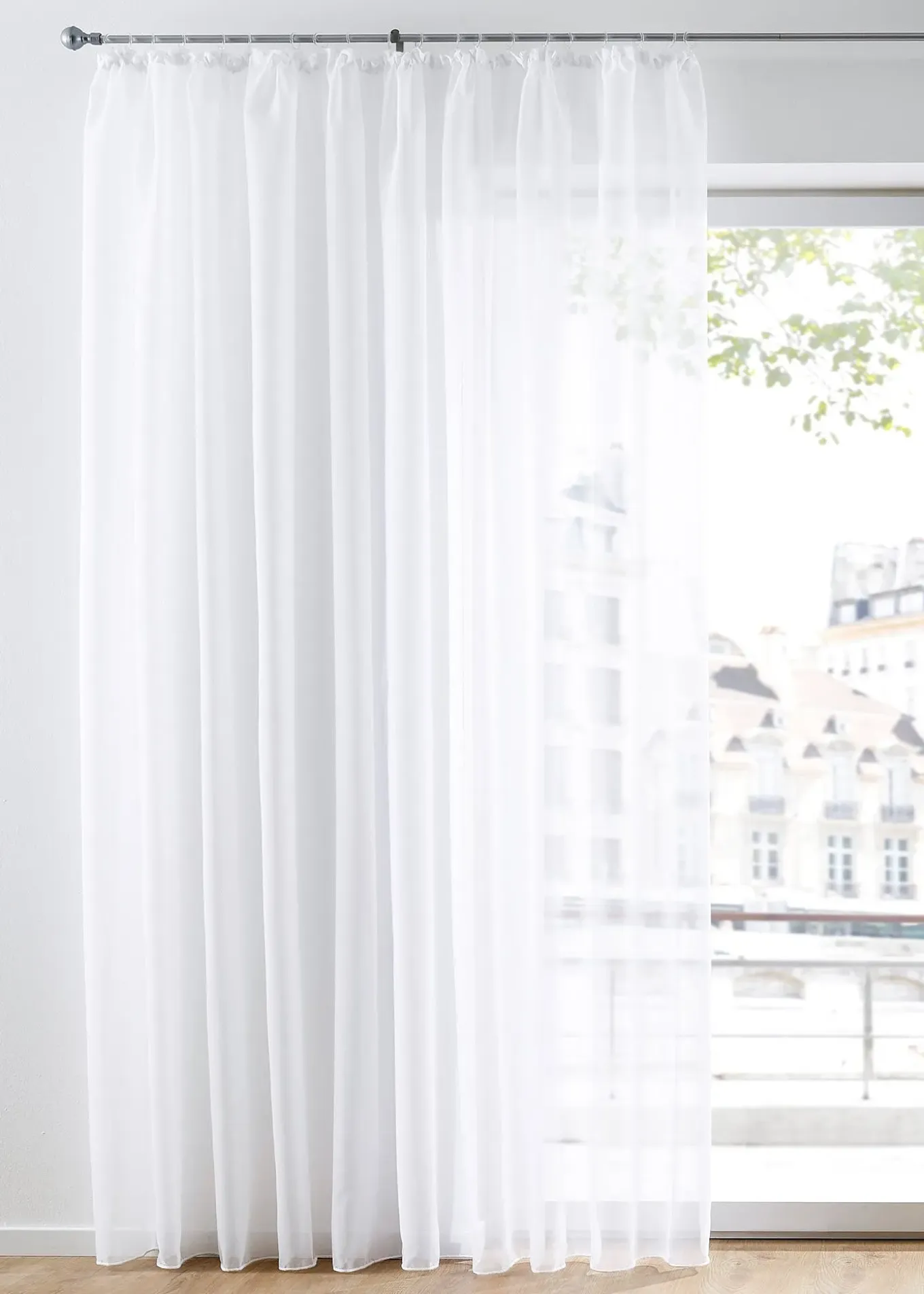 Style épuré. Décoration de fenêtre en voile fin avec base lestée pour un tombé magnifique. Nous conseillons de commander 3 fois la largeur de votre fenêtre.