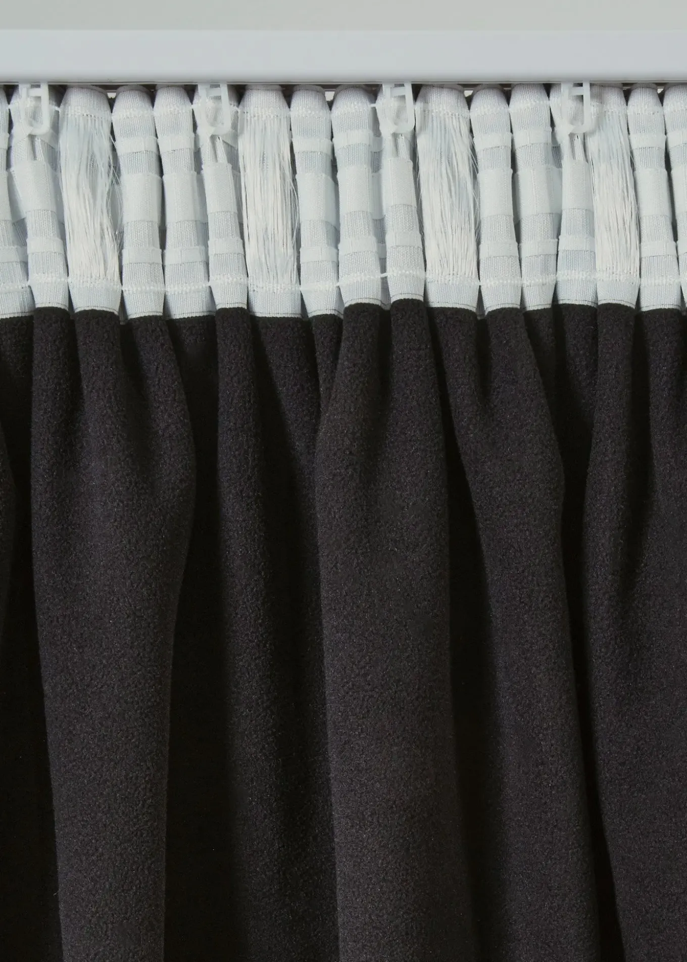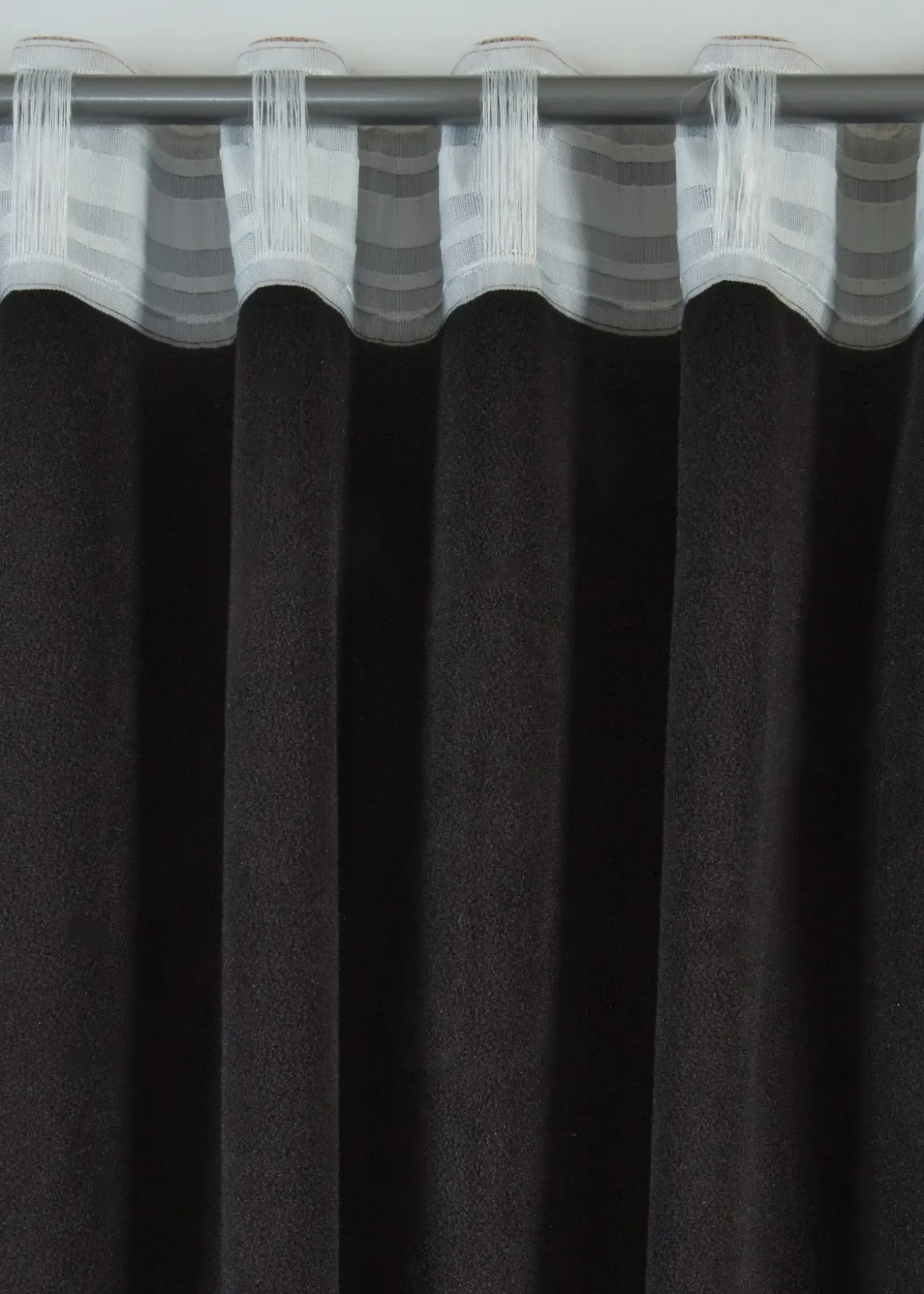 Ce rideau décoratif sert d’isolant phonique et thermique grâce à sa finition spéciale. Le verso est en polaire noire de haute qualité. Il est donc parfait devant les portes d’entrée ou les fenêtres exposées aux courants d’air.