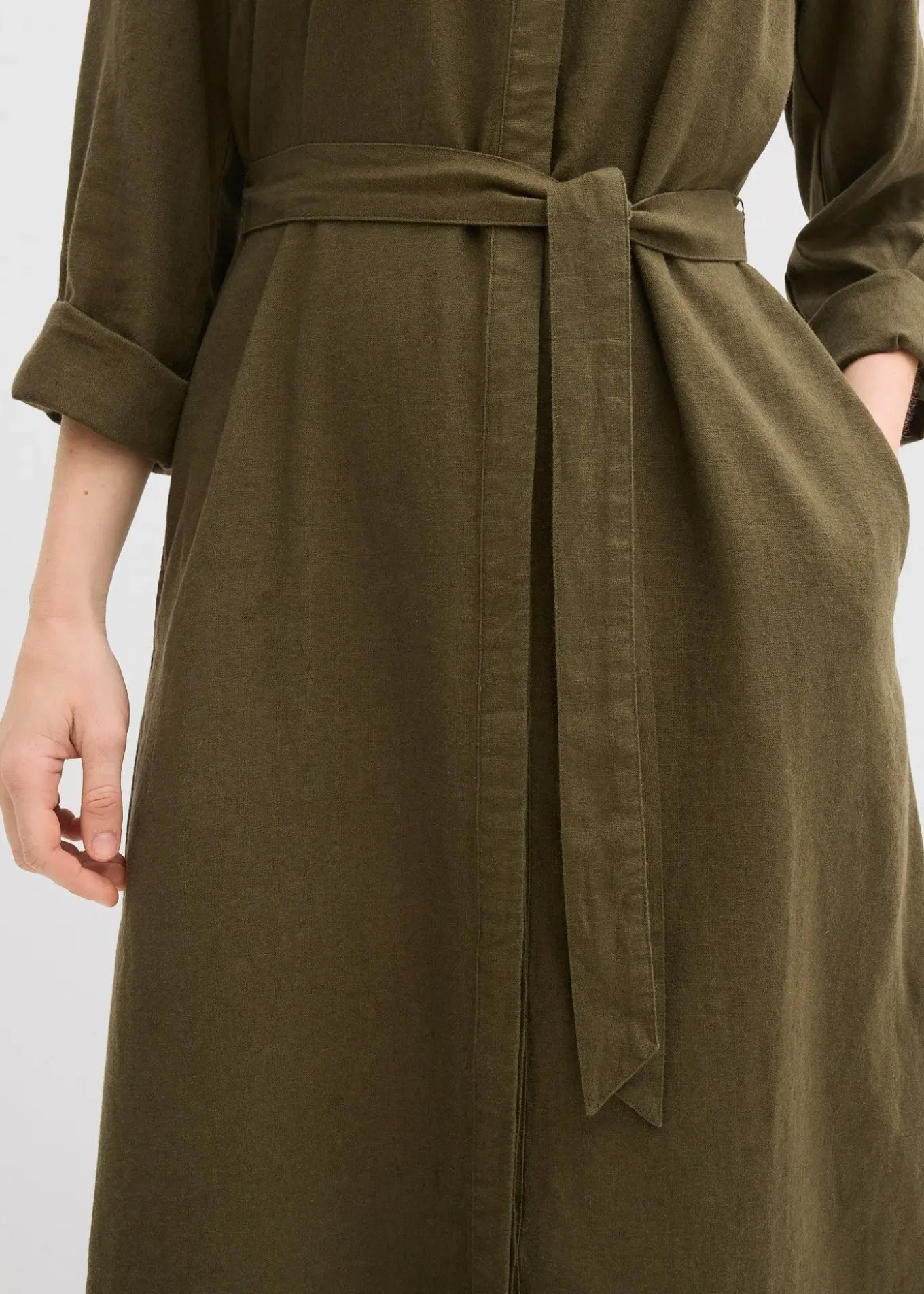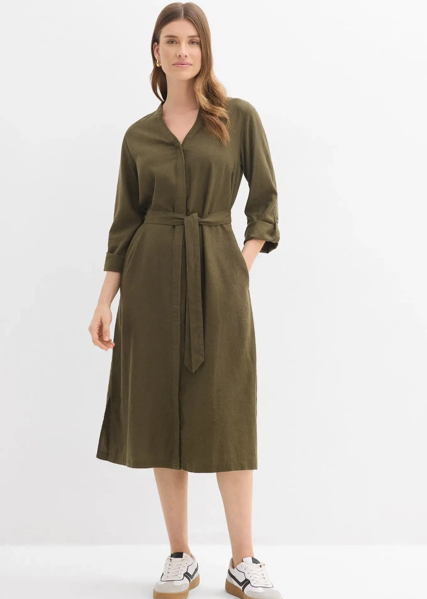 Robe en lin majoritaire avec poches et manches 3/4 à retrousser