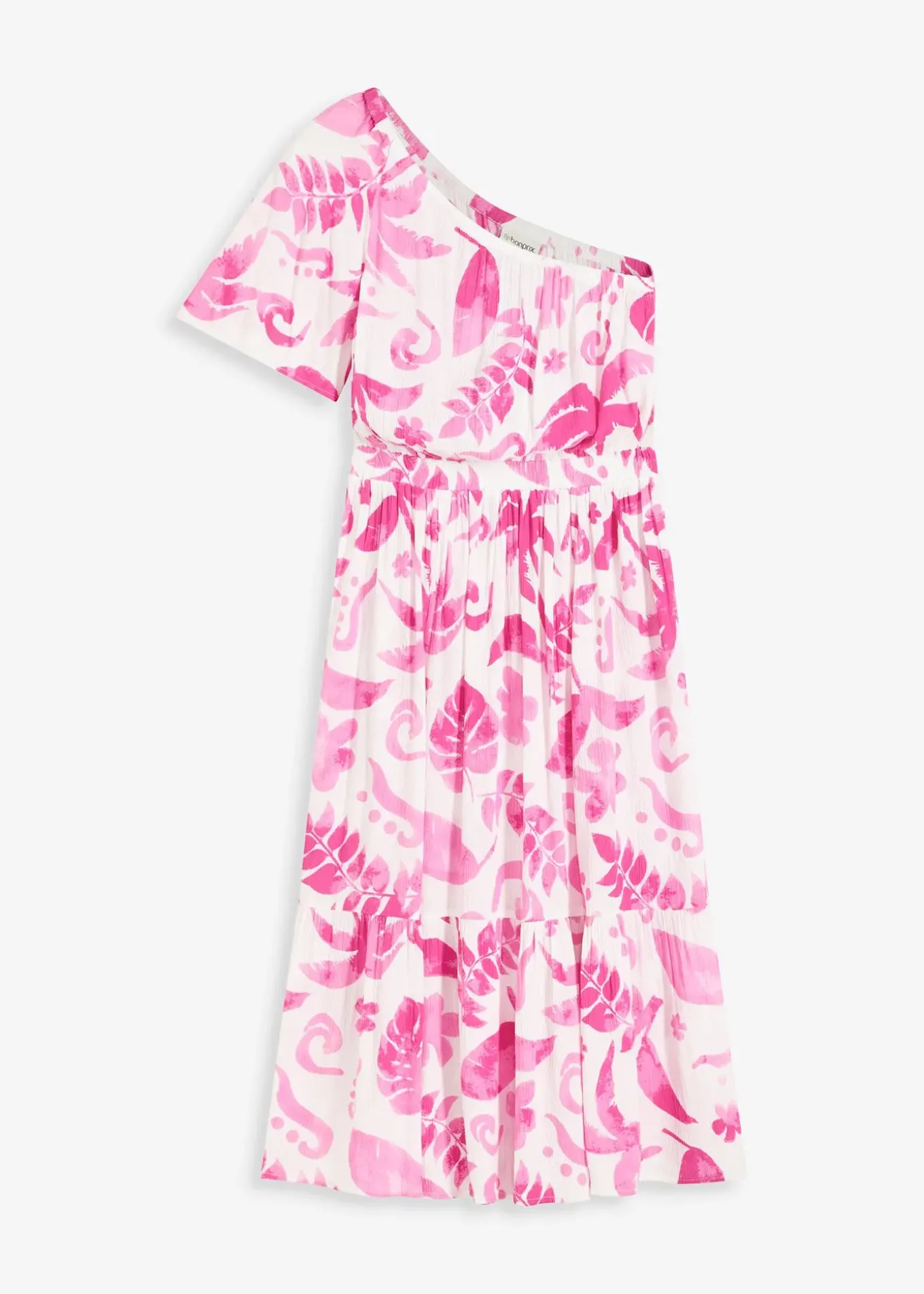 Robe midi asymétrique à imprimé floral, en viscose texturée, manche papillon ample et volant en bas de la jupe