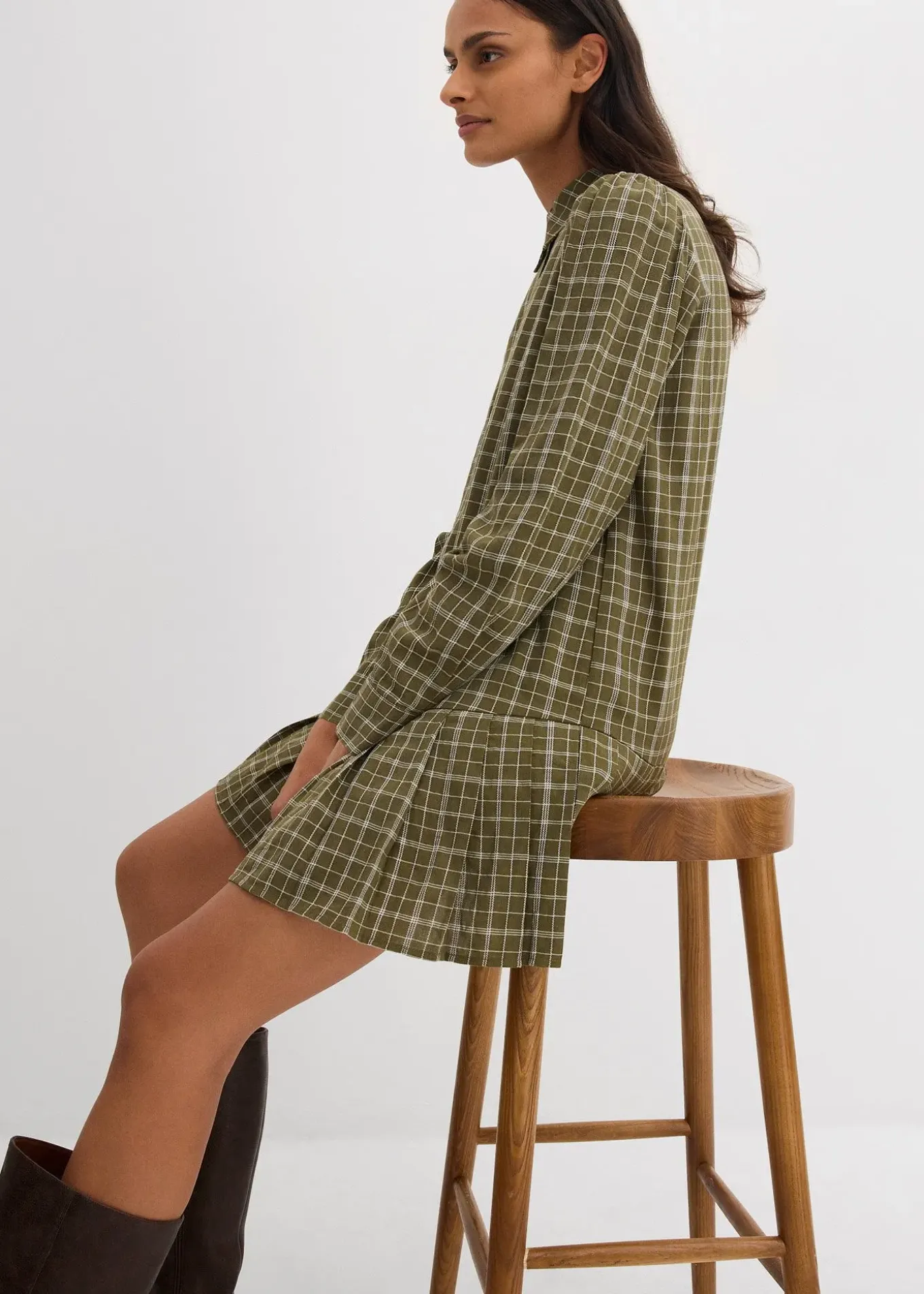 Robe-chemise à carreaux décontractée
