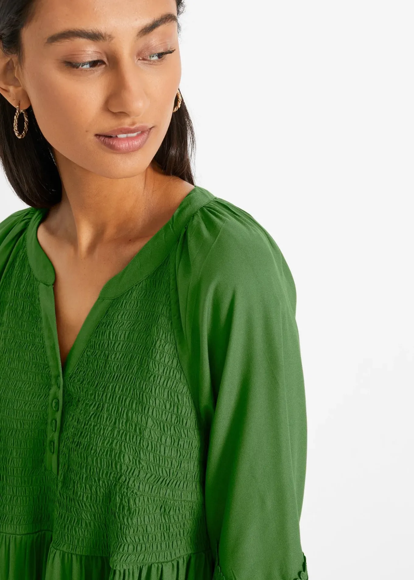 L’empiècement smocké au niveau de la poitrine apporte du confort.