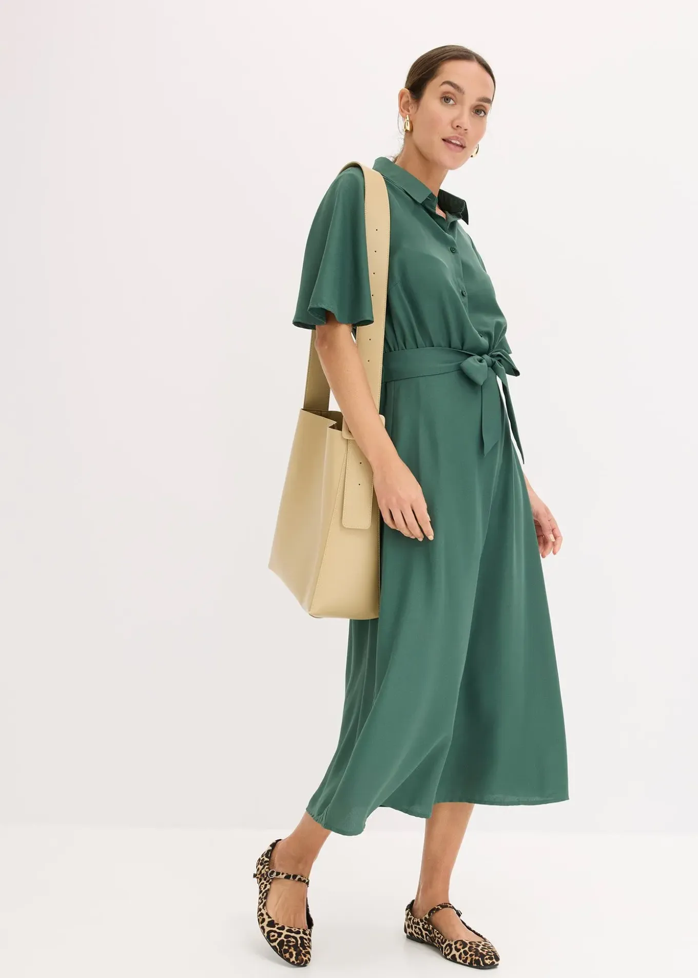 Robe-chemise midi féminine avec ceinture à nouer à la taille