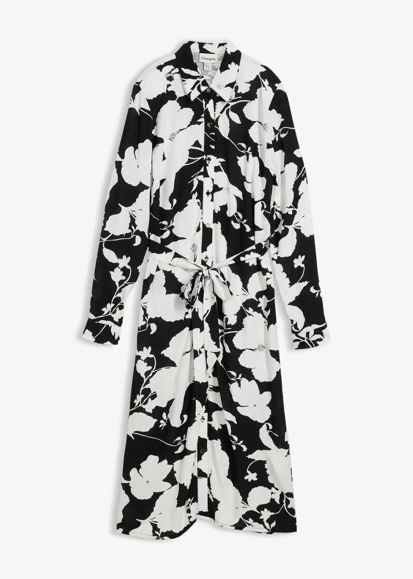 Robe-chemise tendance en viscose fluide avec imprimé et ceinture à nouer à la taille