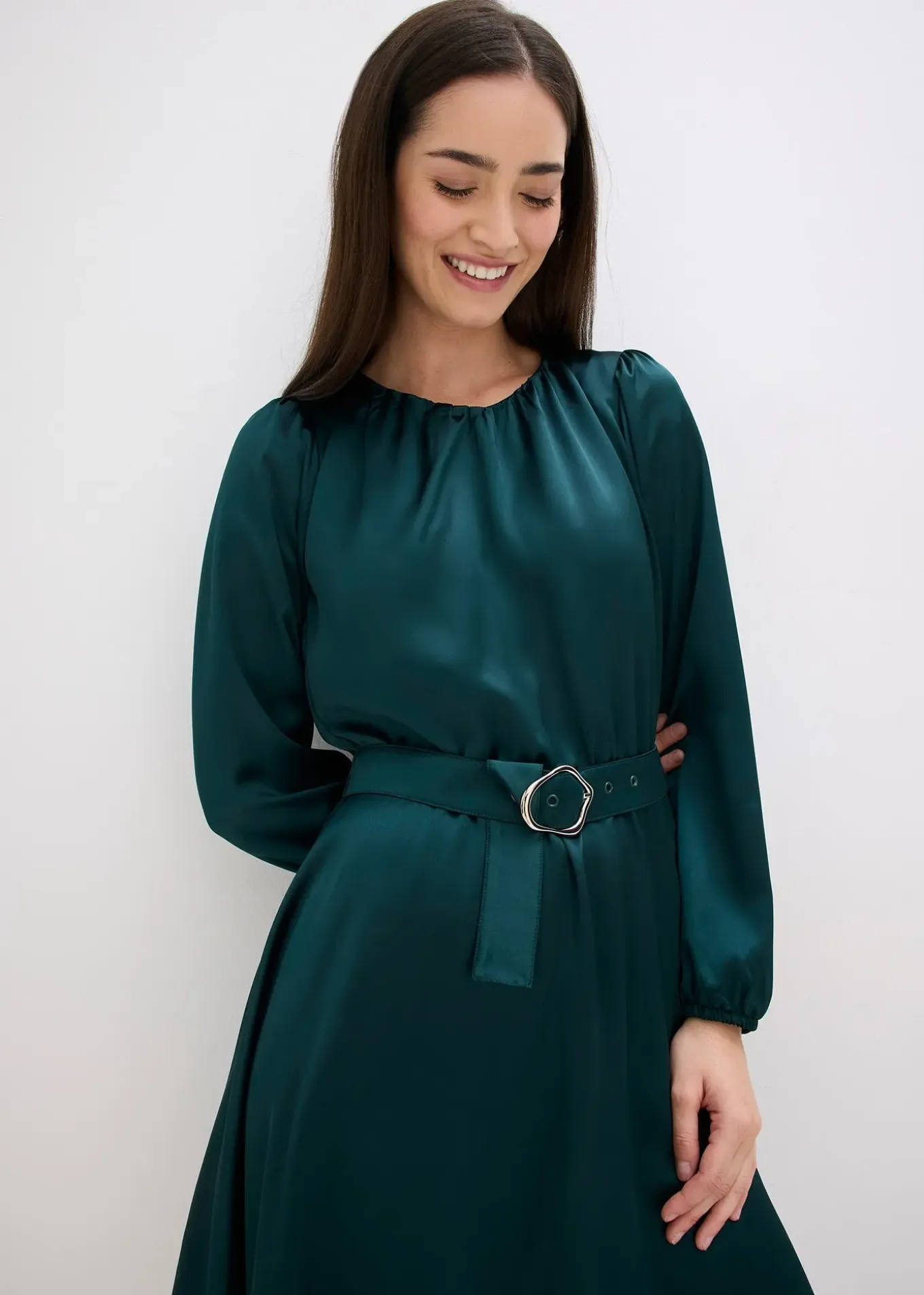 Robe courte avec jupe à pans et encolure froncée