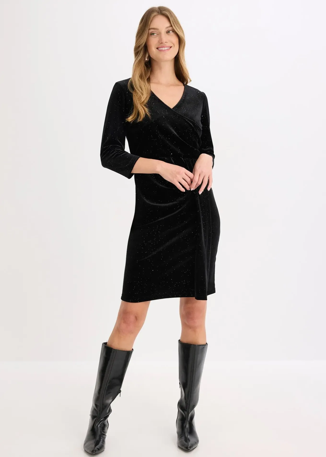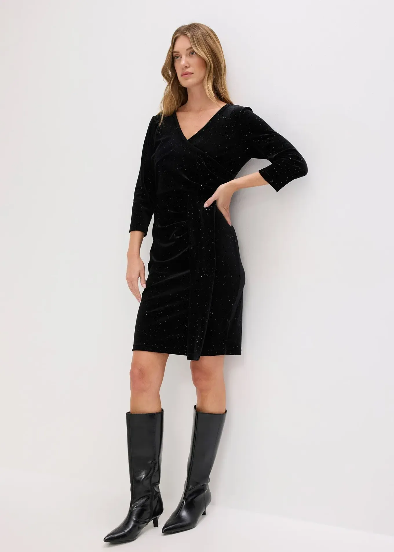 Robe moderne et féminine en velours, style portefeuille, avec strass et fronces, une pièce parfaite pour les occasions spéciales