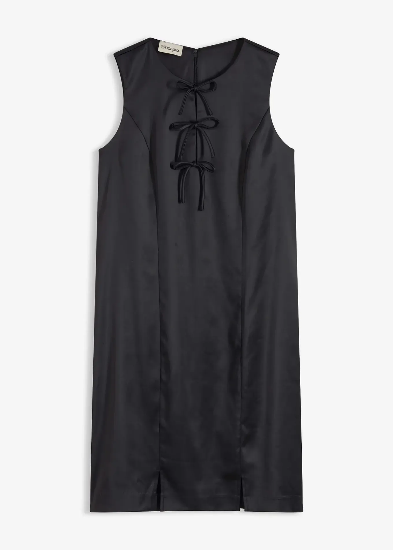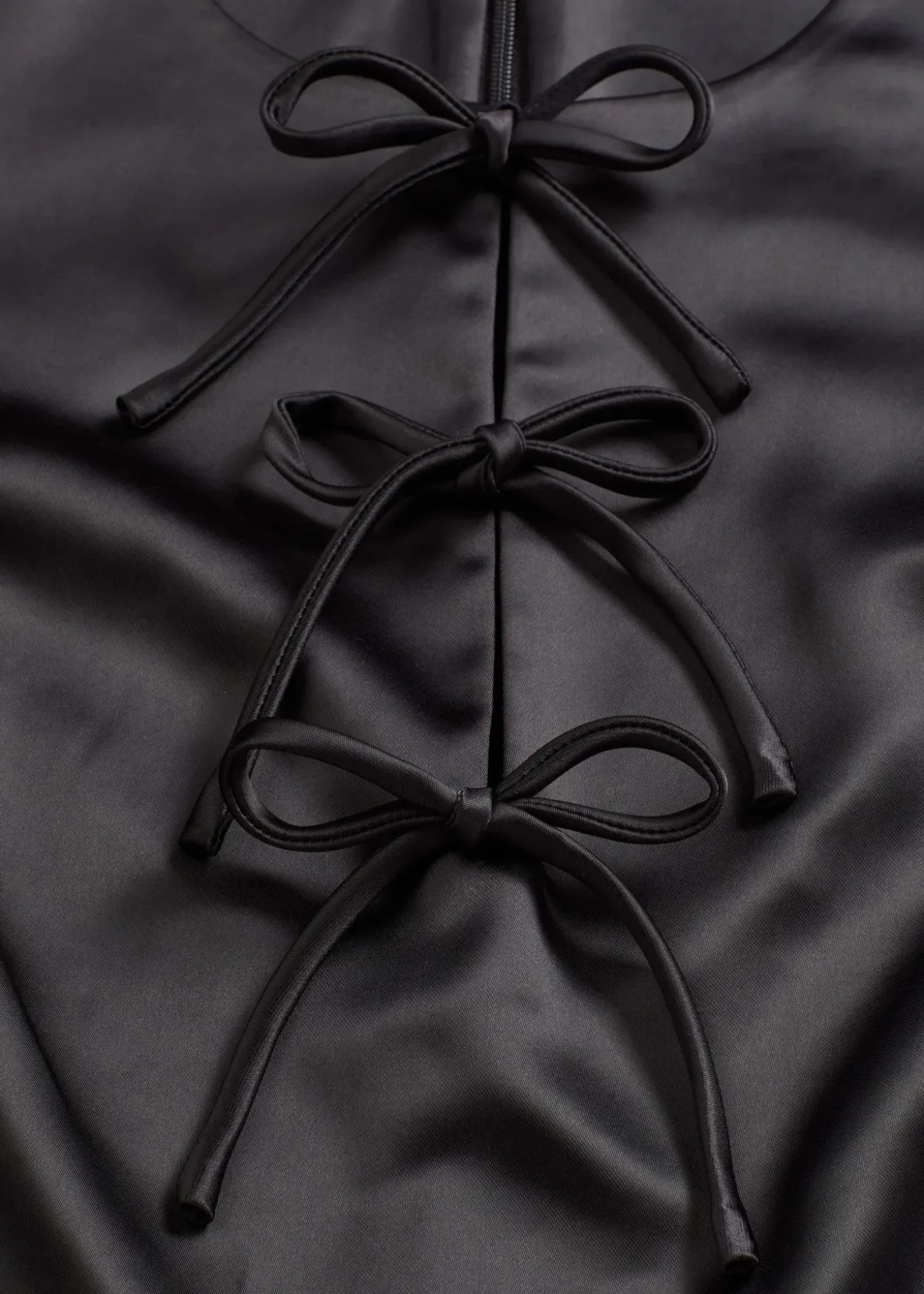 Robe courte avec coutures sculptantes et nœuds sur le décolleté