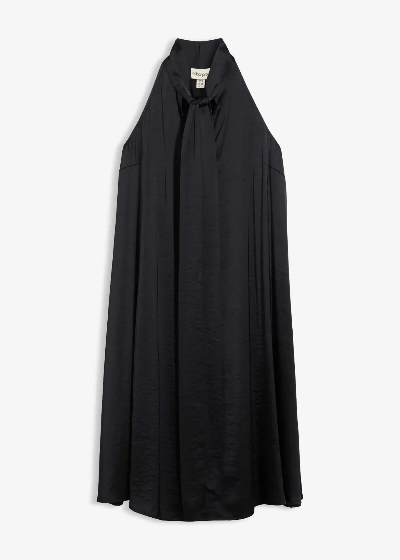 Robe dos-nu, courte et évasée, en satin fluide avec détail écharpe