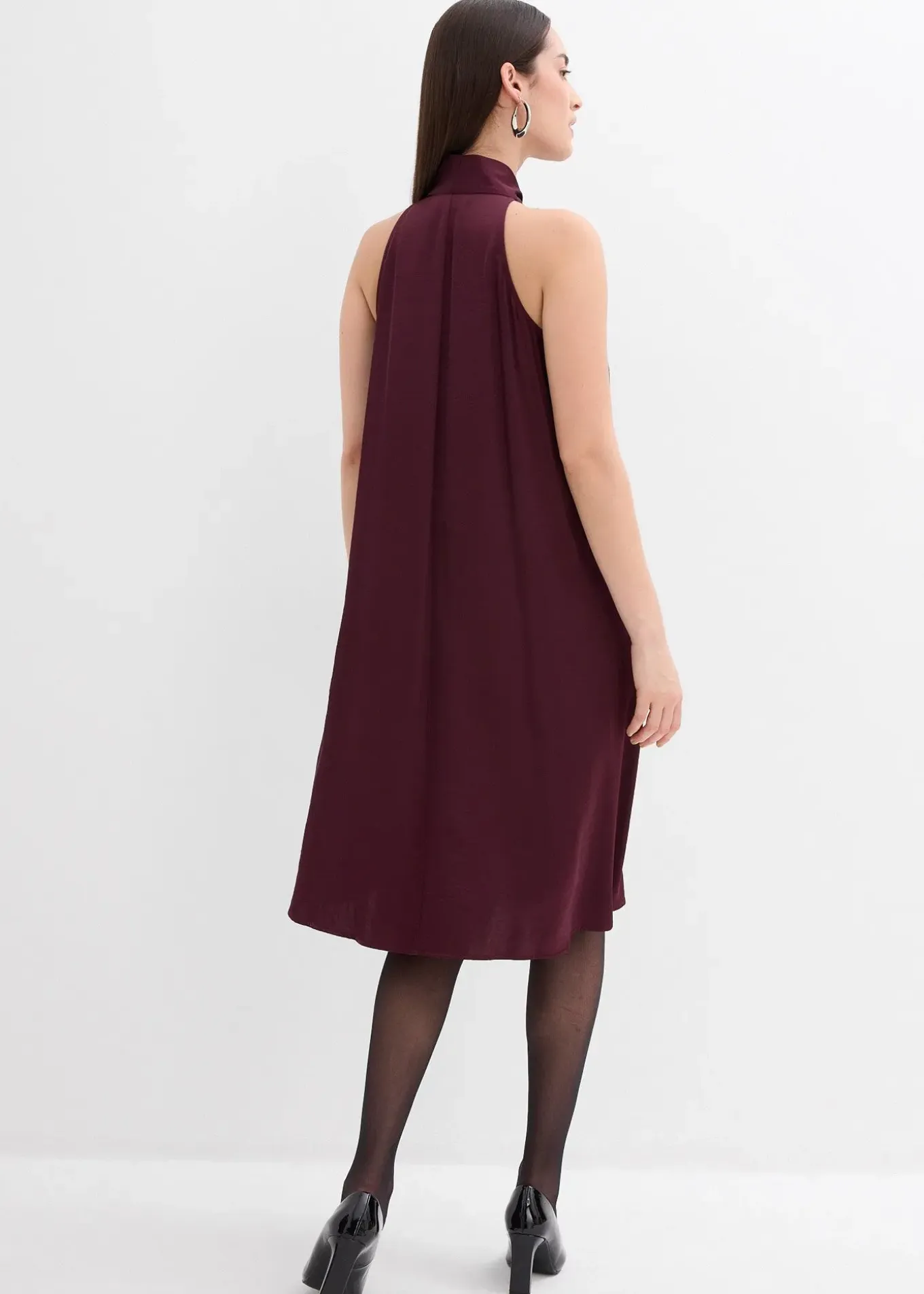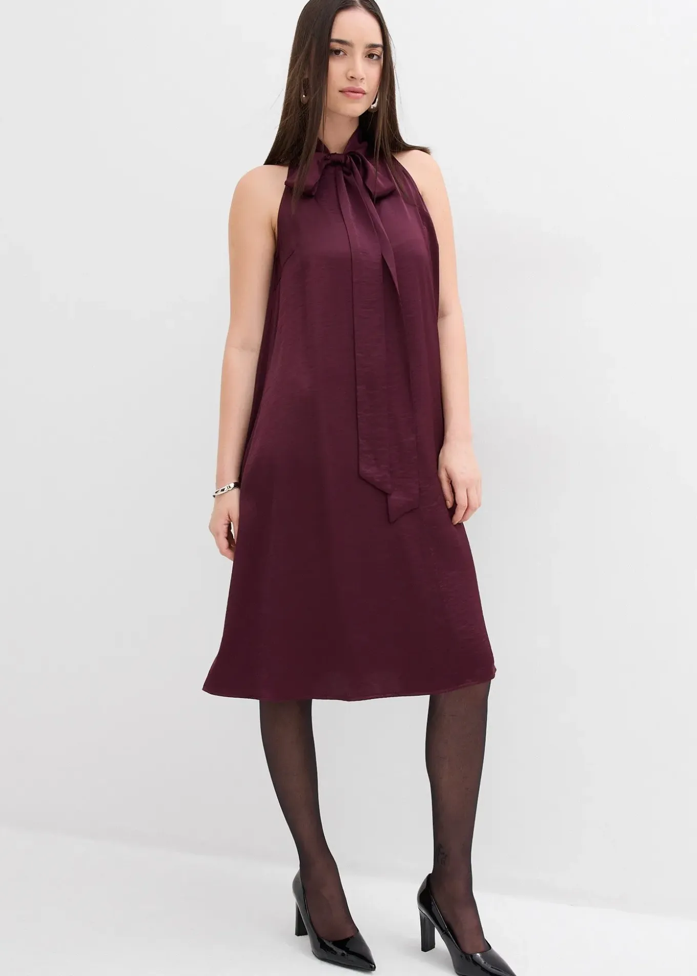 Robe dos-nu, courte et évasée, en satin fluide avec détail écharpe