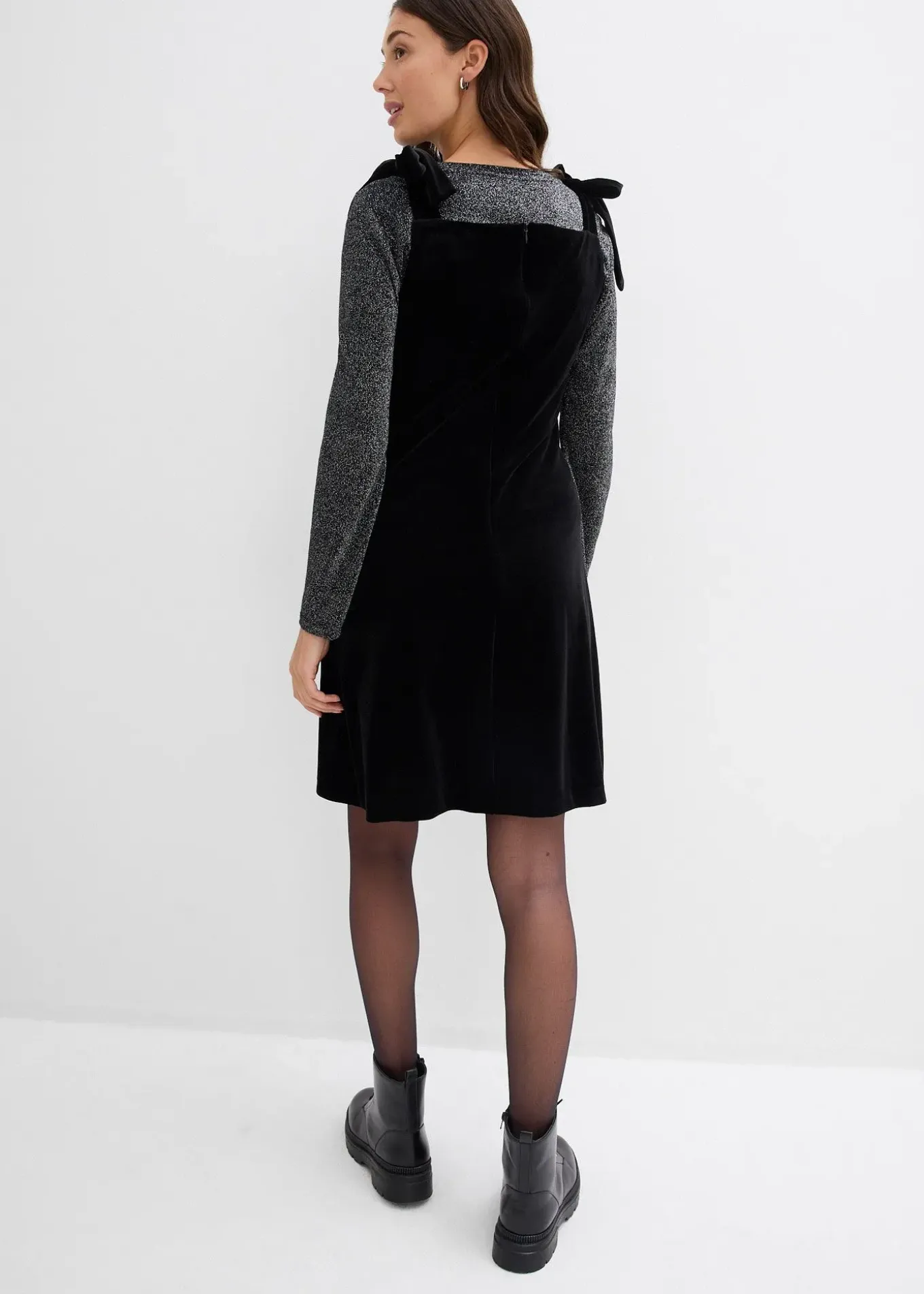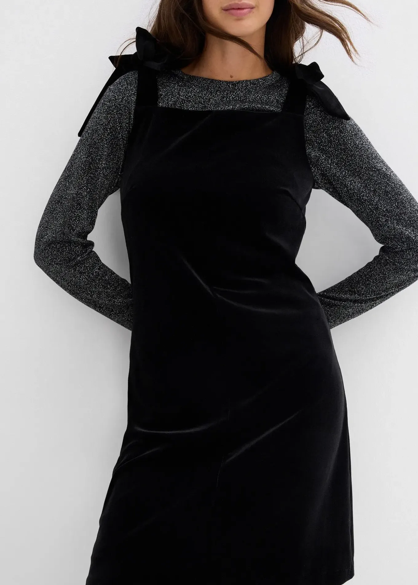 Robe courte en velours doux avec bretelles à nouer sur les épaules