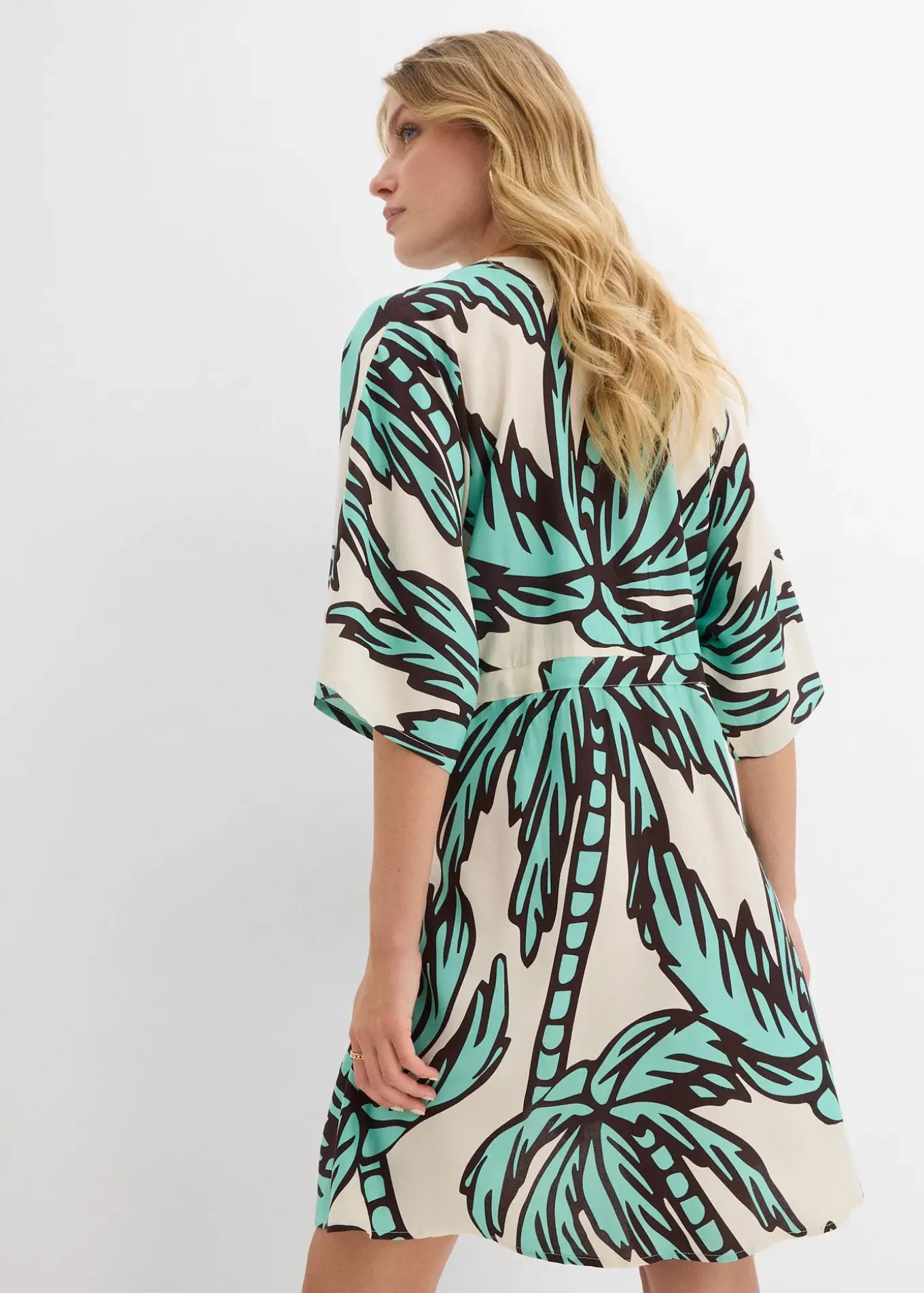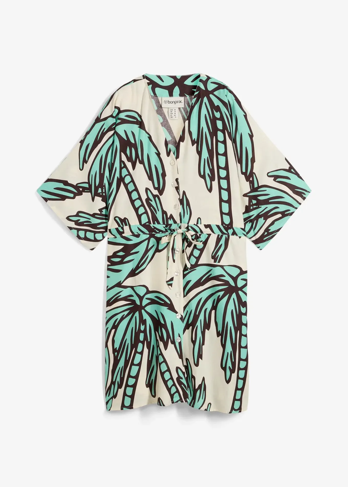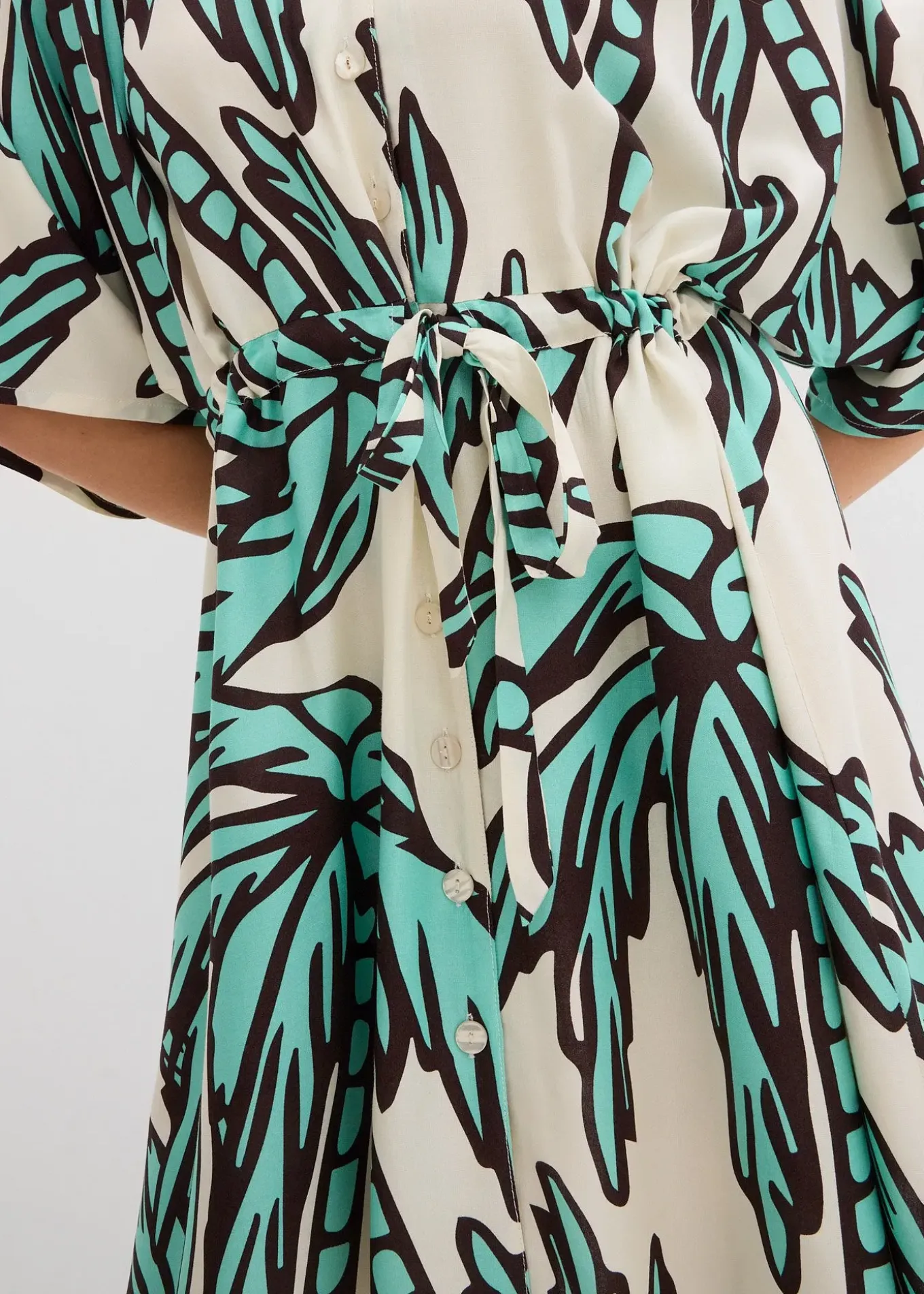 Robe imprimée en viscose fluide, haut boutonné et lien coulissant à la taille