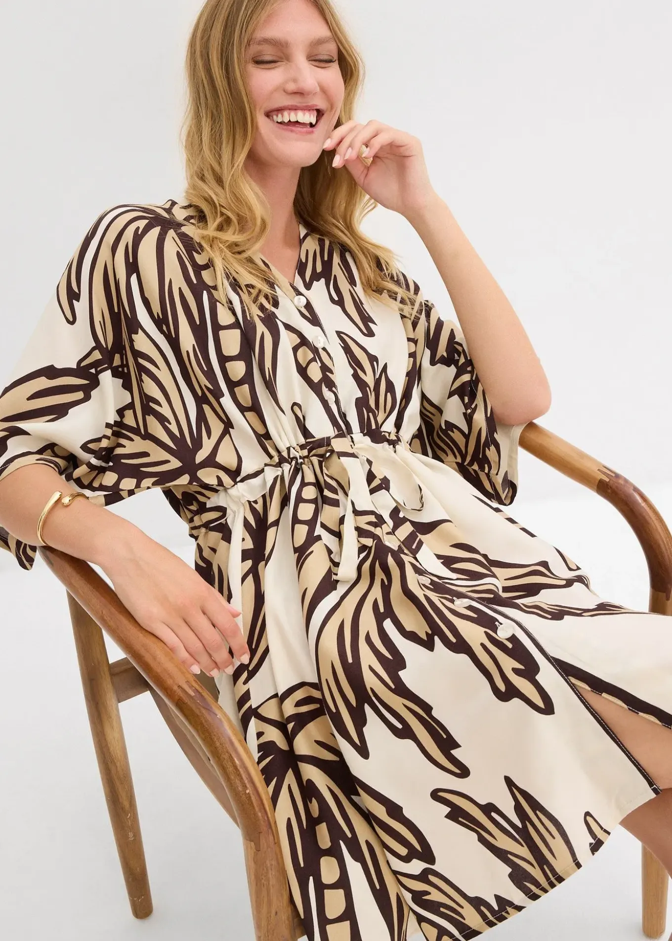 Robe imprimée en viscose fluide, haut boutonné et lien coulissant à la taille