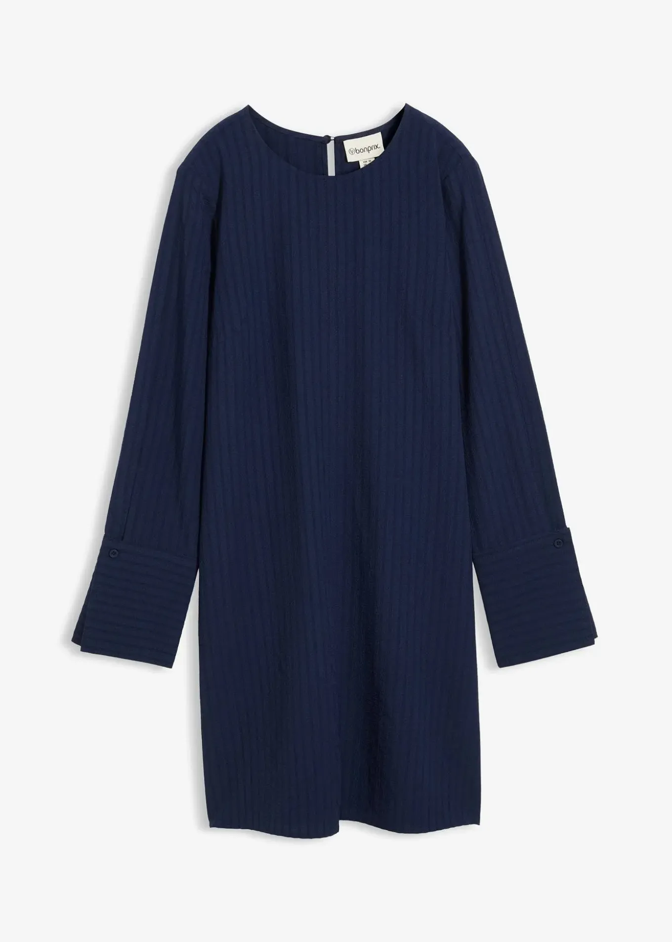Robe courte et texturée, larges manches fendues et fermeture goutte d’eau avec bouton dans le dos