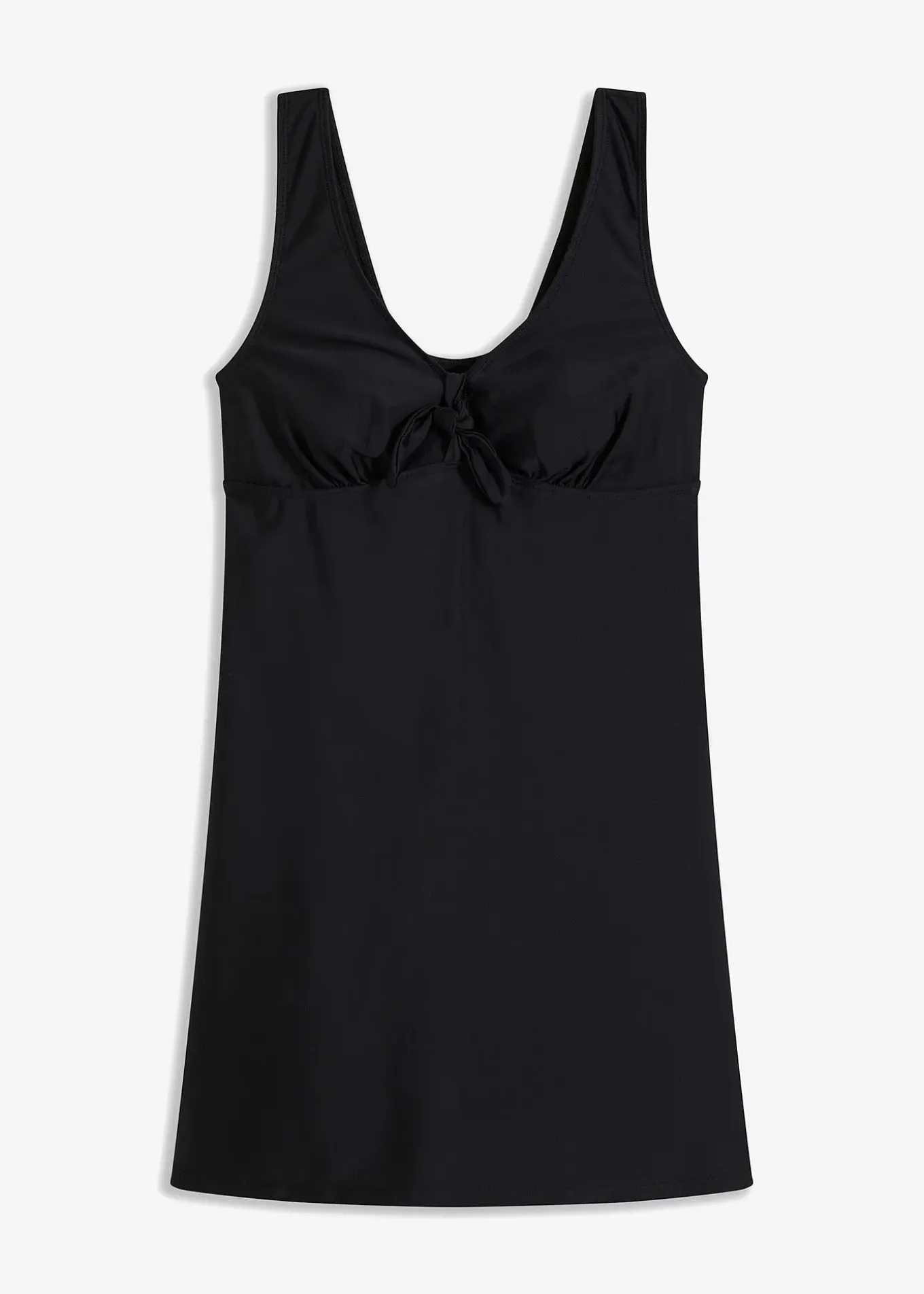 Cette robe de bain exclusive avec maillot 1 pièce intégré de bpc selection vous garantit une allure stylée à la plage et à la piscine. Ce maillot de bain style robe est doté d’un boxer intégré. Ses coques souples intégrées, sa doublure poitrine et sa bande élastique sous poitrine assurent un ajustement optimal. Ses larges bretelles non réglables offrent un grand confort, tandis que son décolleté plongeant en V sublime la poitrine. L’empiècement jupette de forme trapèze est directement monté sous la poitrine. Le petit nœud devant apporte une jolie touche finale.