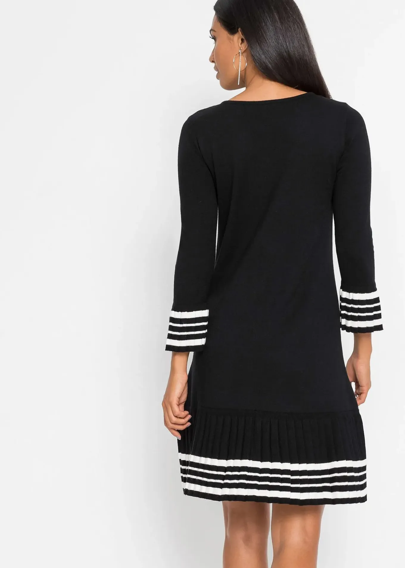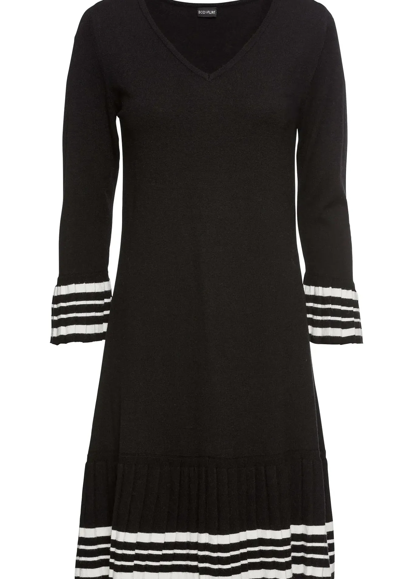 Robe en maille fantaisie de BODYFLIRT avec empiècement plissé en bas de jupe et en bas de manches. Long. env. 90 cm.