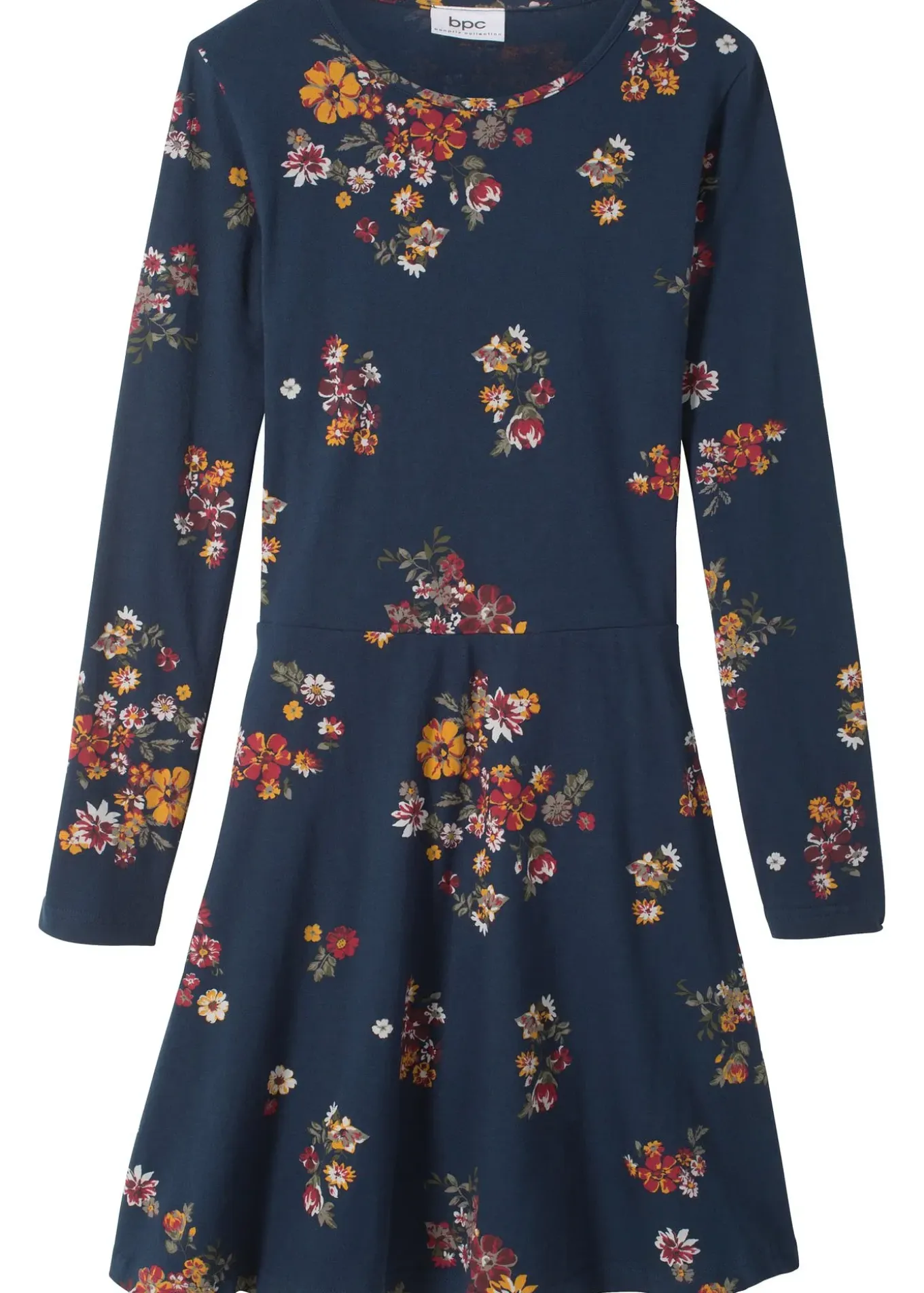 Jolie robe fille en jersey imprimé fleurs, manches longues