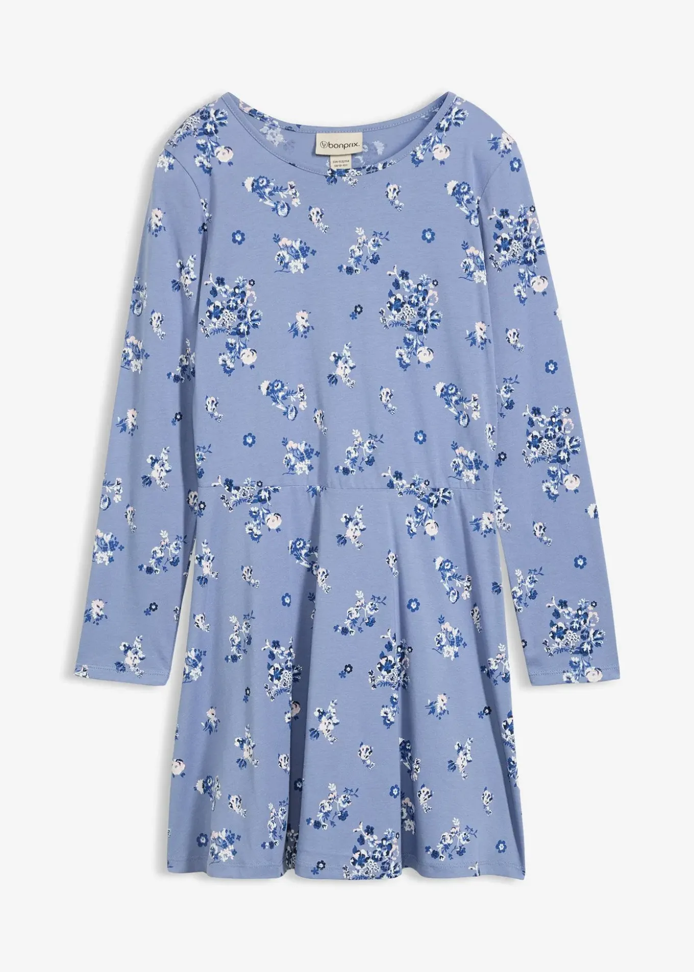 Jolie robe fille en jersey imprimé fleurs, manches longues