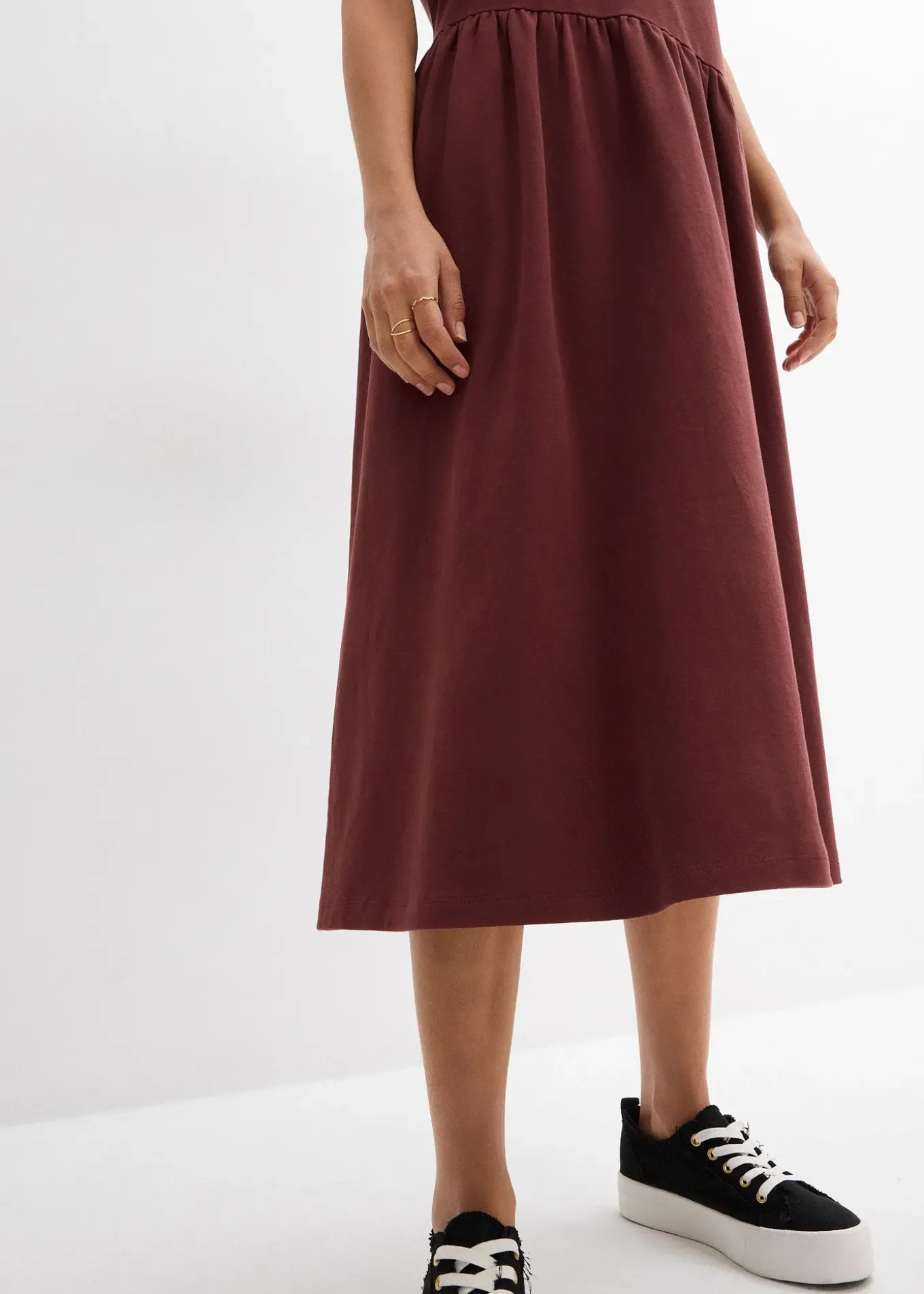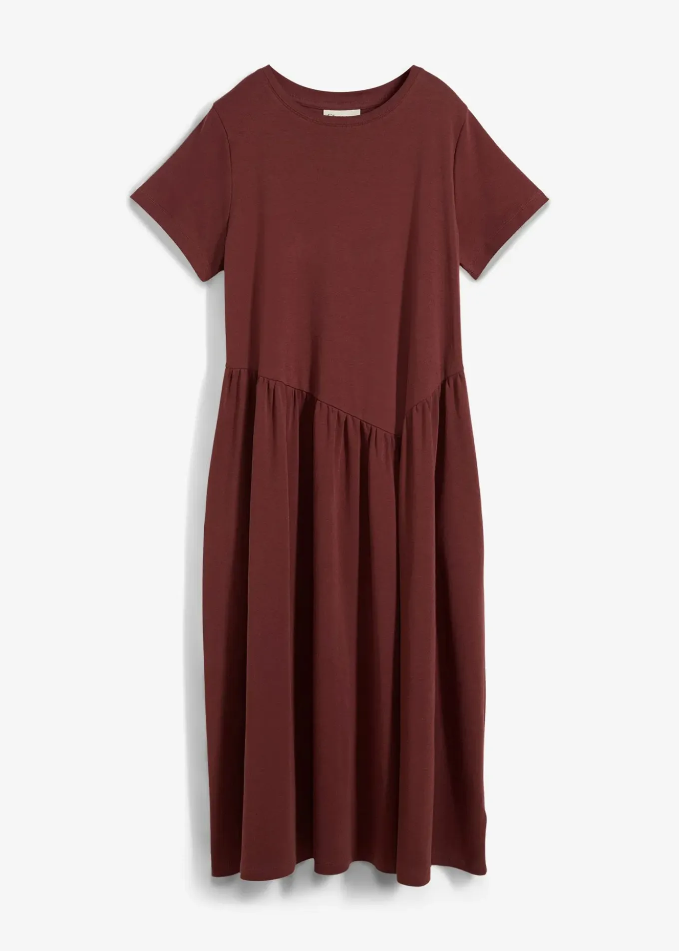 Robe en jersey coton épais avec poches sur les côtés et couture d’empiècement asymétrique