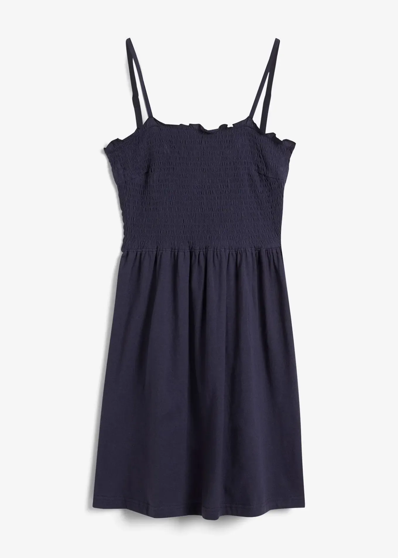 Robe en jersey coton confortable avec jolis smocks et bretelles réglables