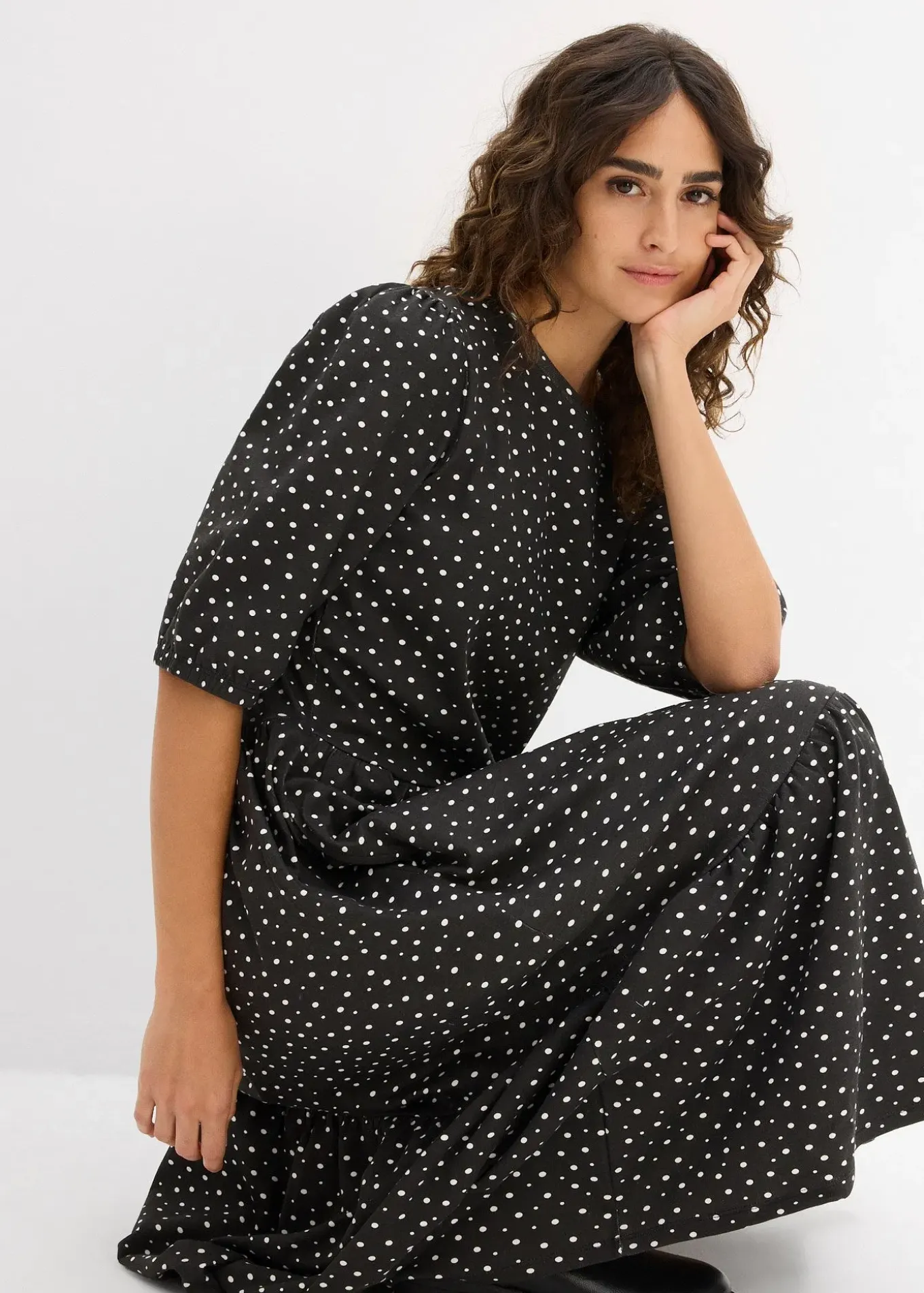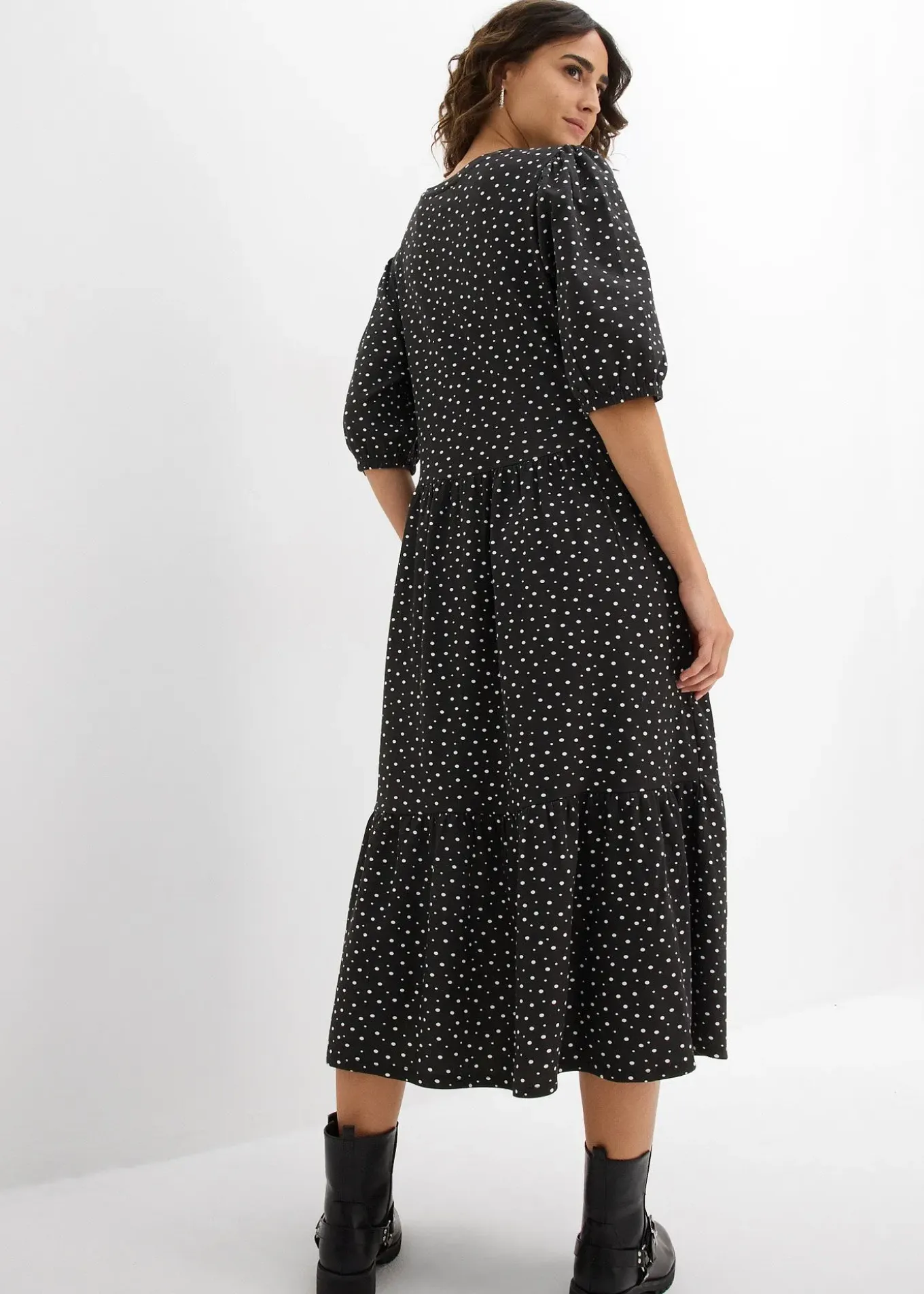 Robe midi avec finitions élastiquées aux manches