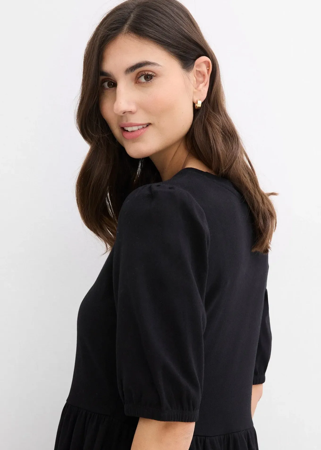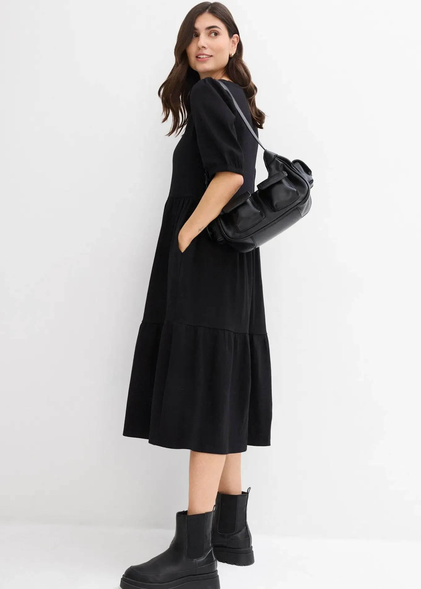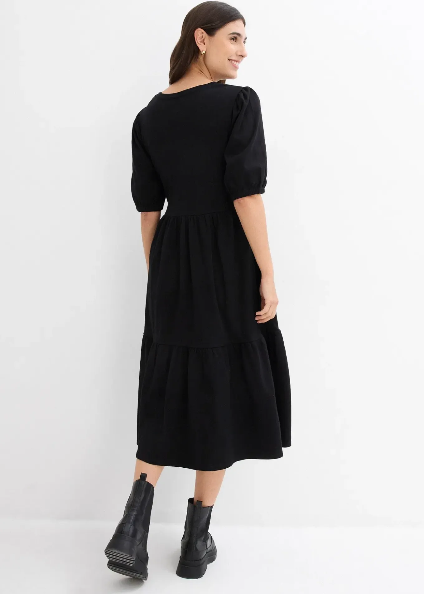 Robe midi avec finitions élastiquées aux manches