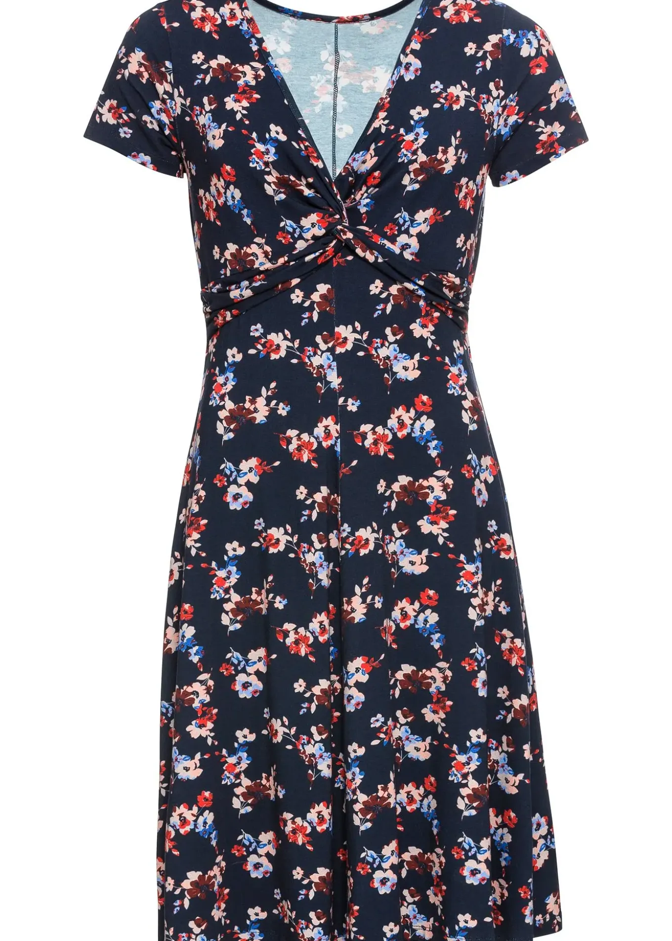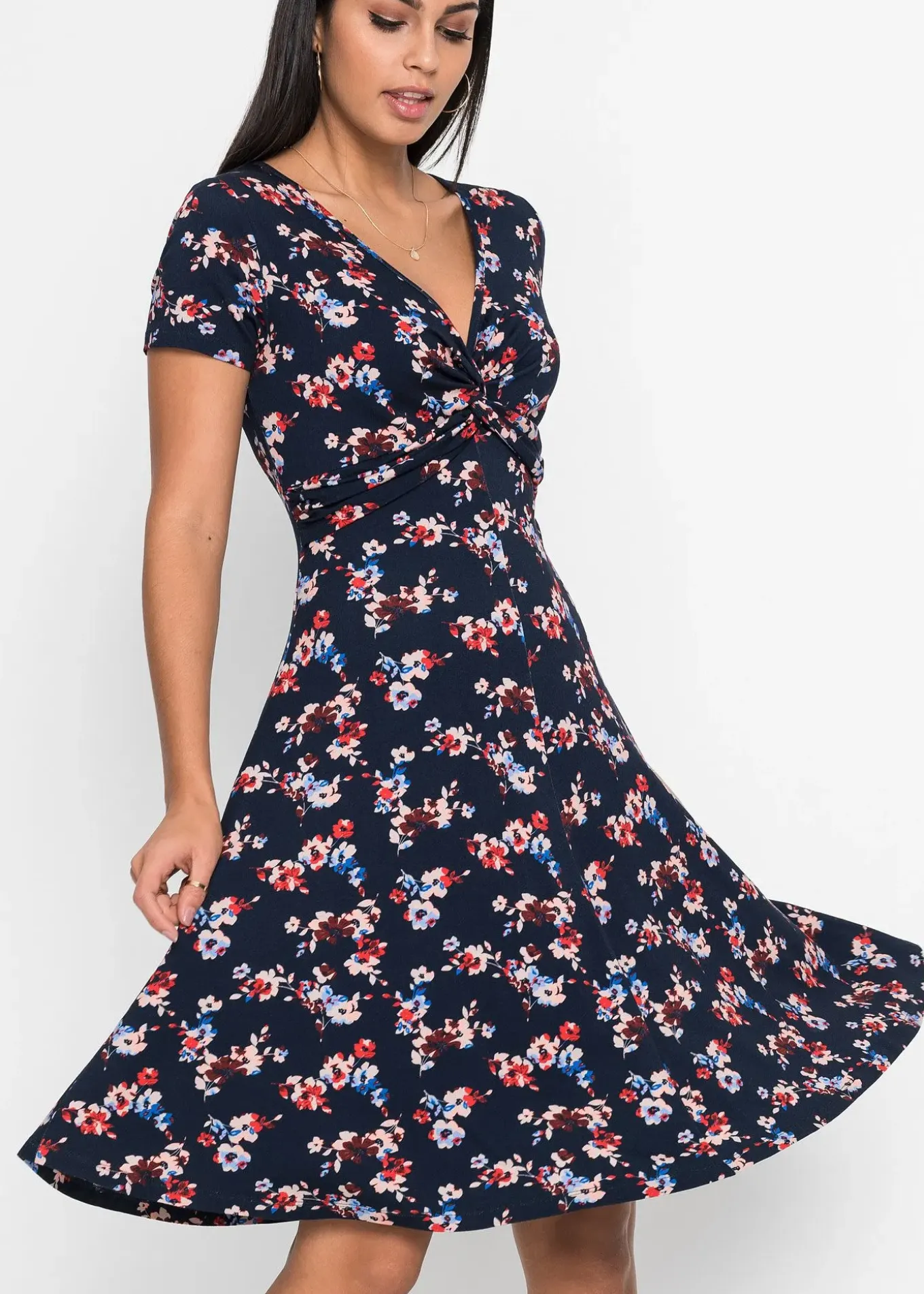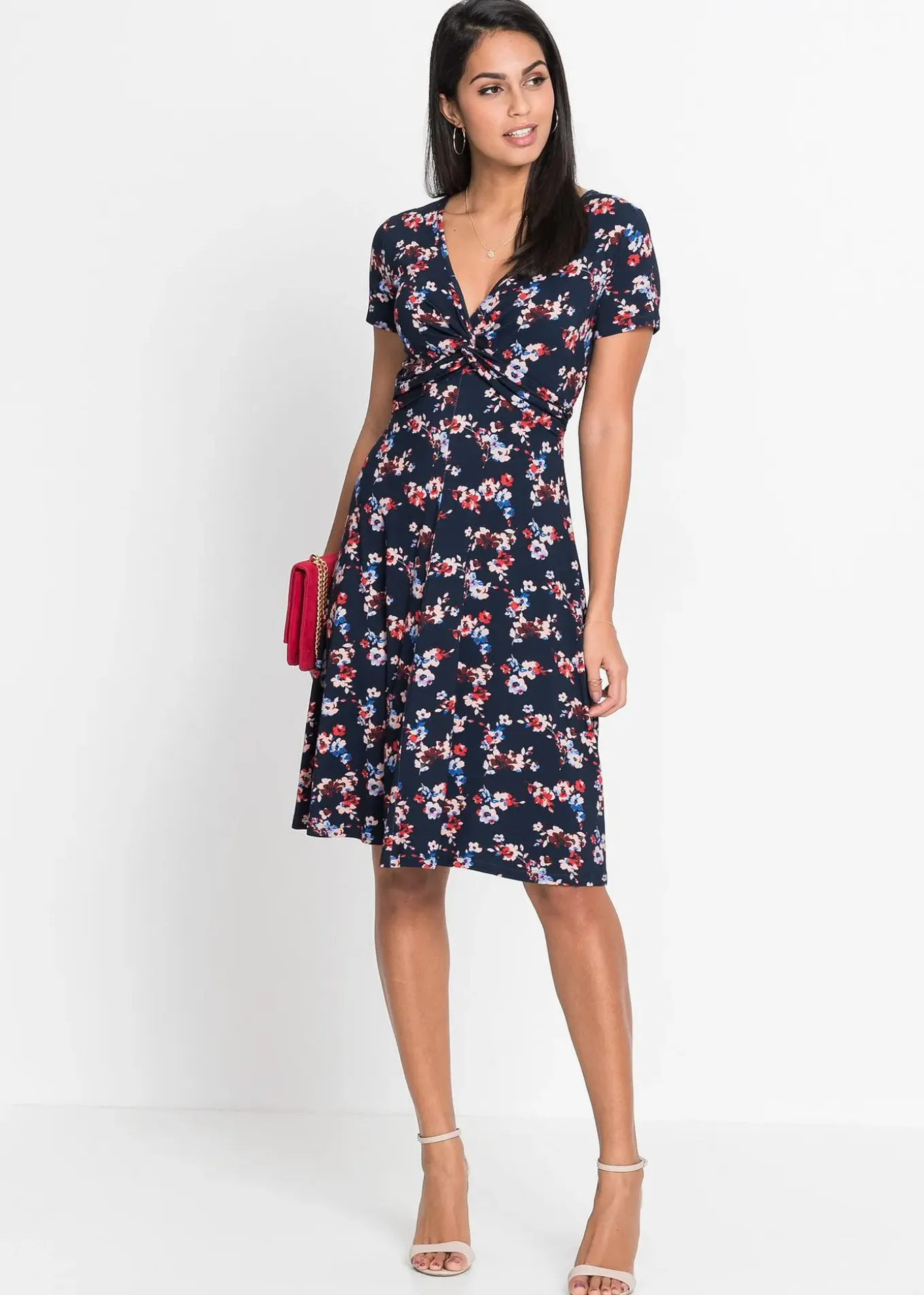 Robe manches courtes à pois de BODYFLIRT avec un joli détail nœud sur le devant dessinant un décolleté en V plongeant. Jupe fluide longueur genou. Idéale pour la saison chaude.