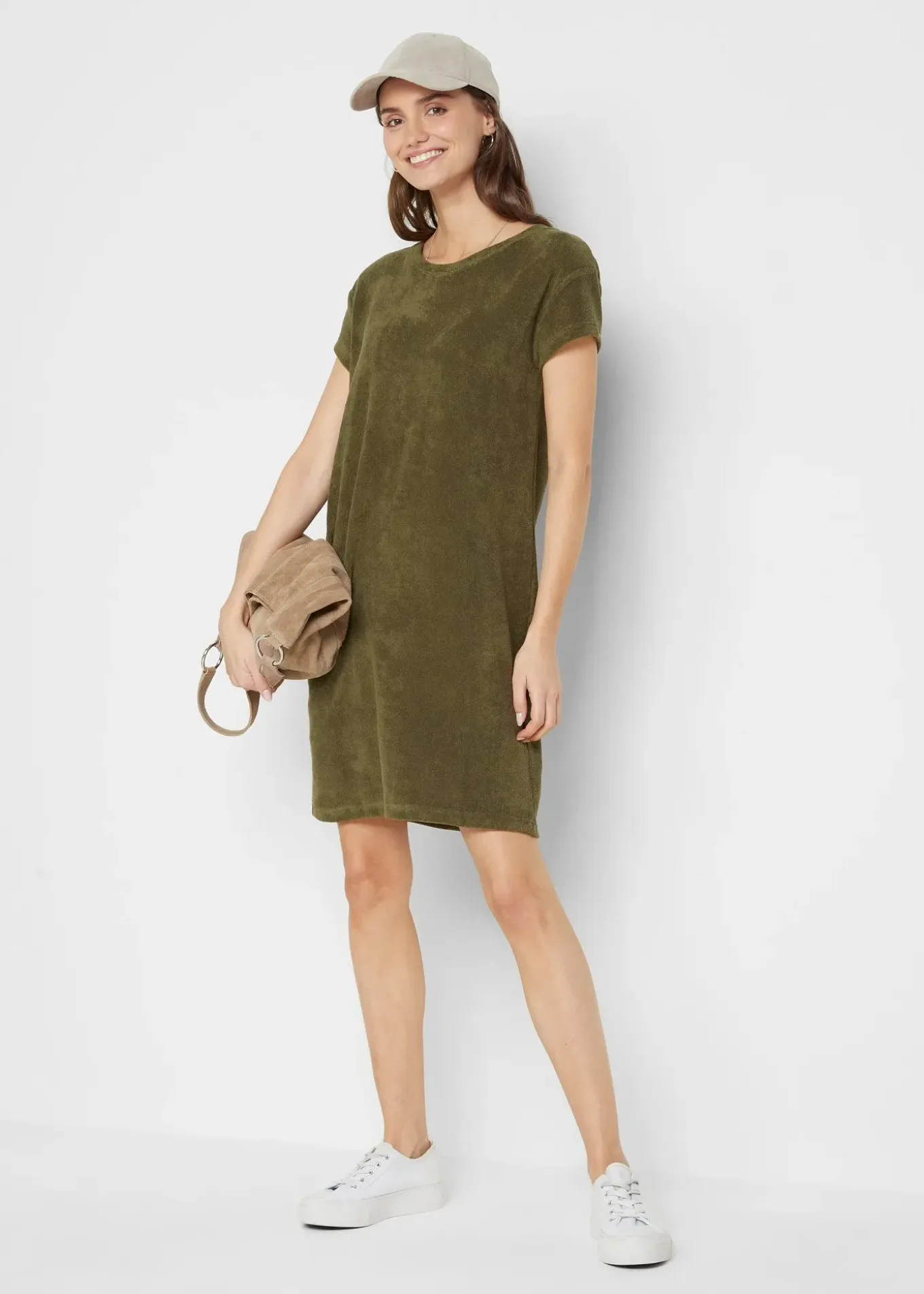 Robe en tissu éponge à manches courtes et épaules descendues