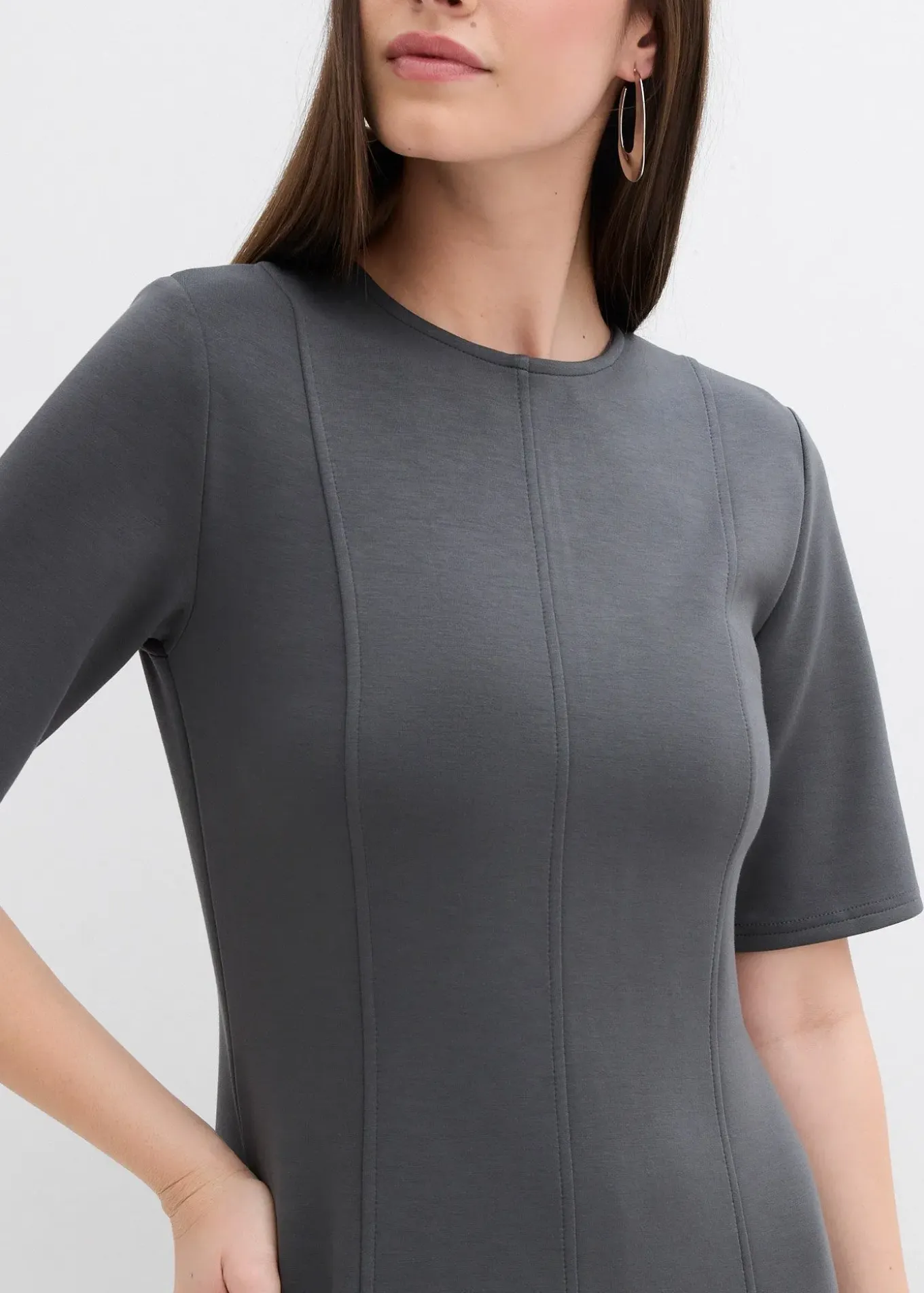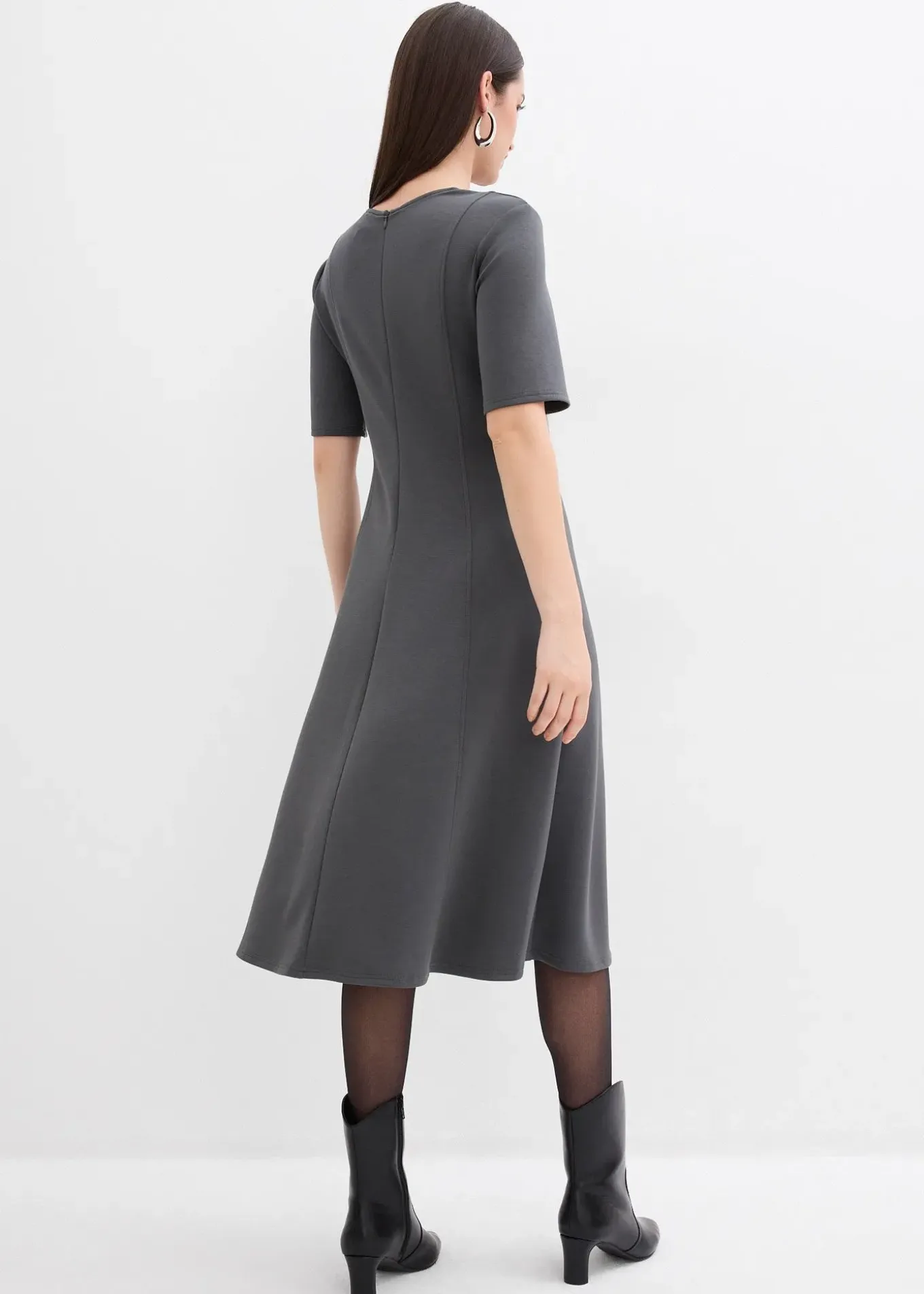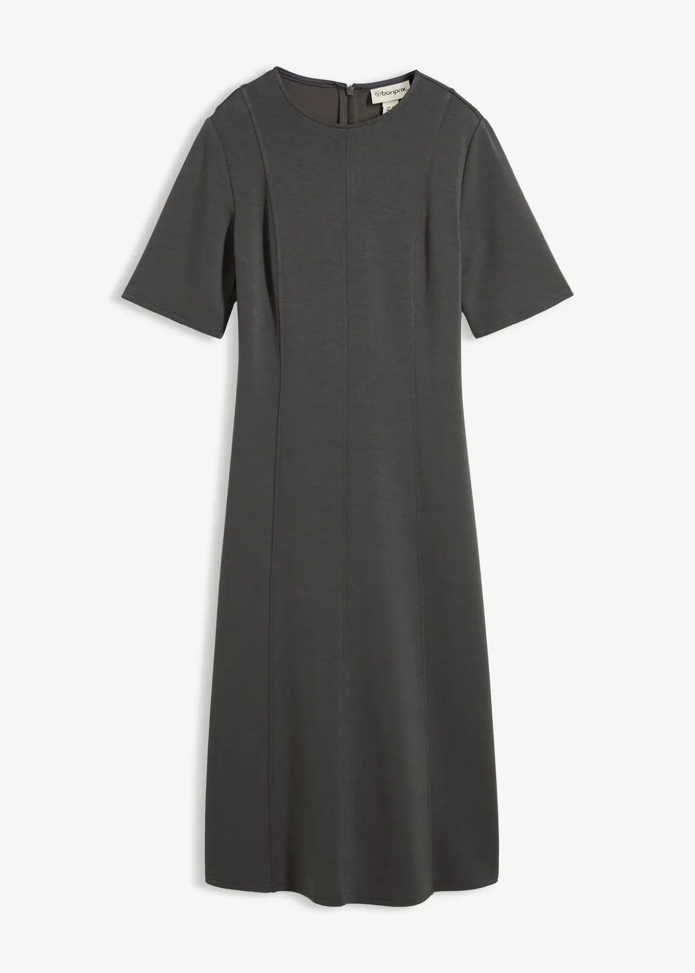 Robe courte à coutures d’empiècement verticales et jupe évasée, fermeture zippée cachée derrière
