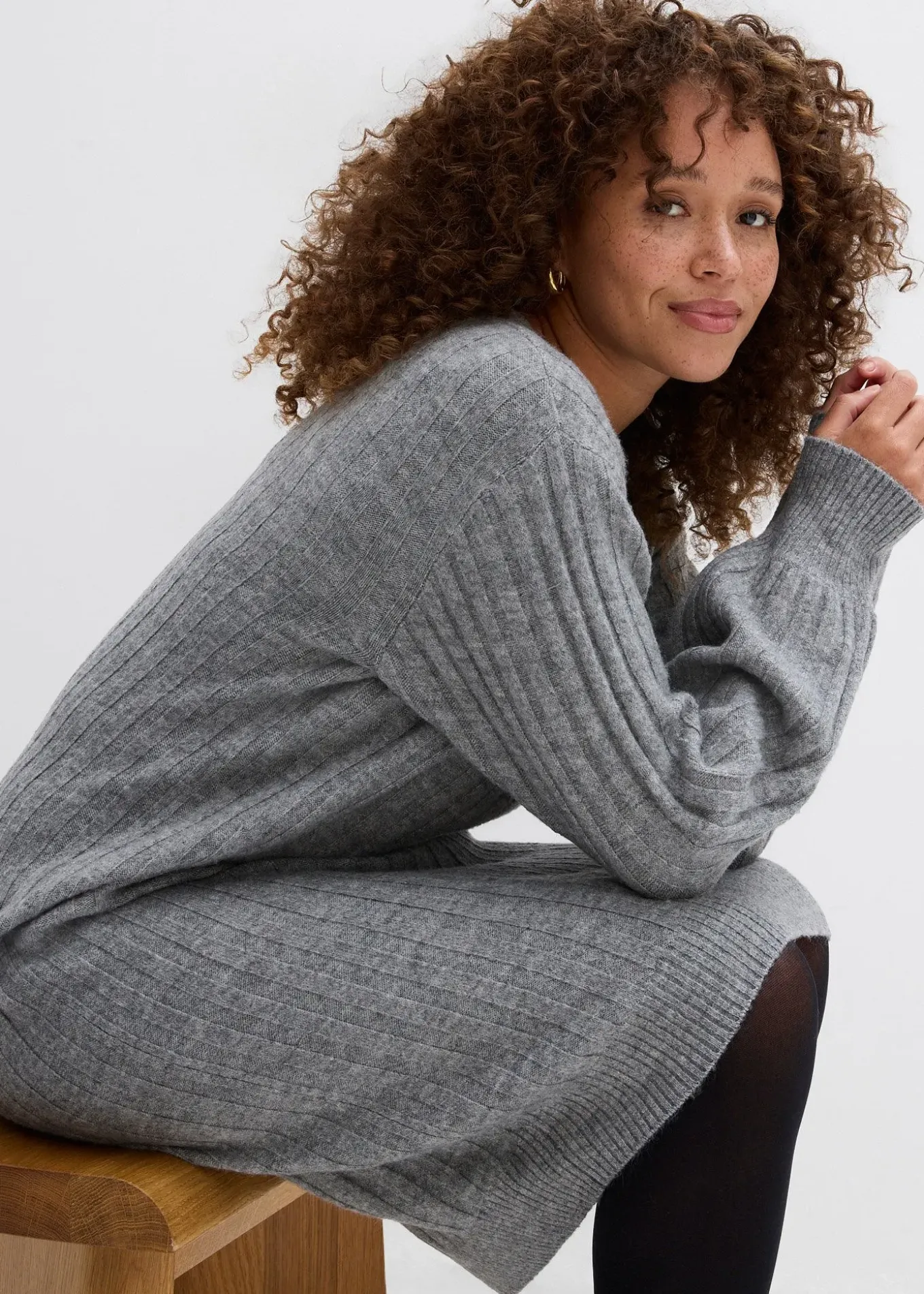 Robe en maille confortable à col en V