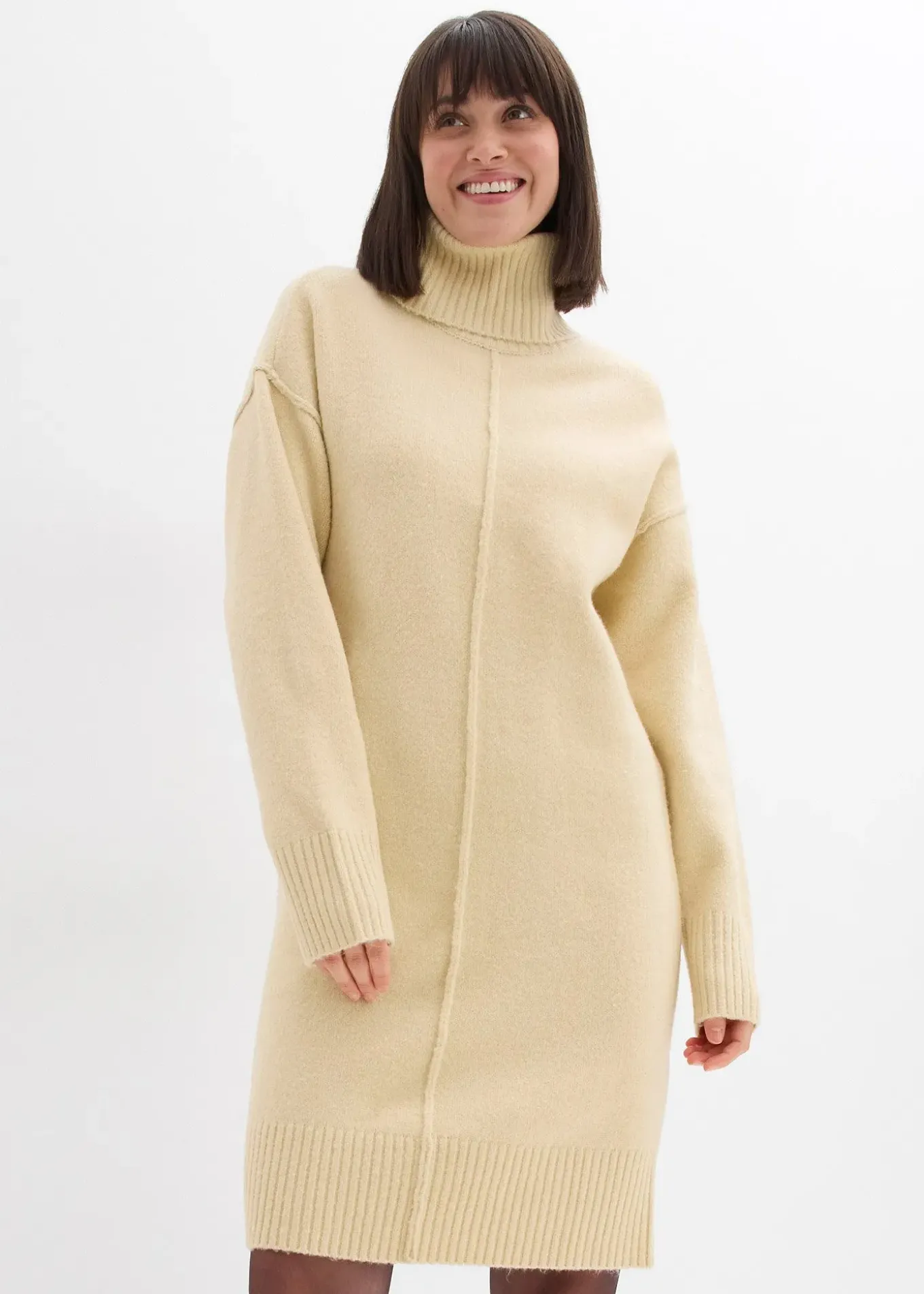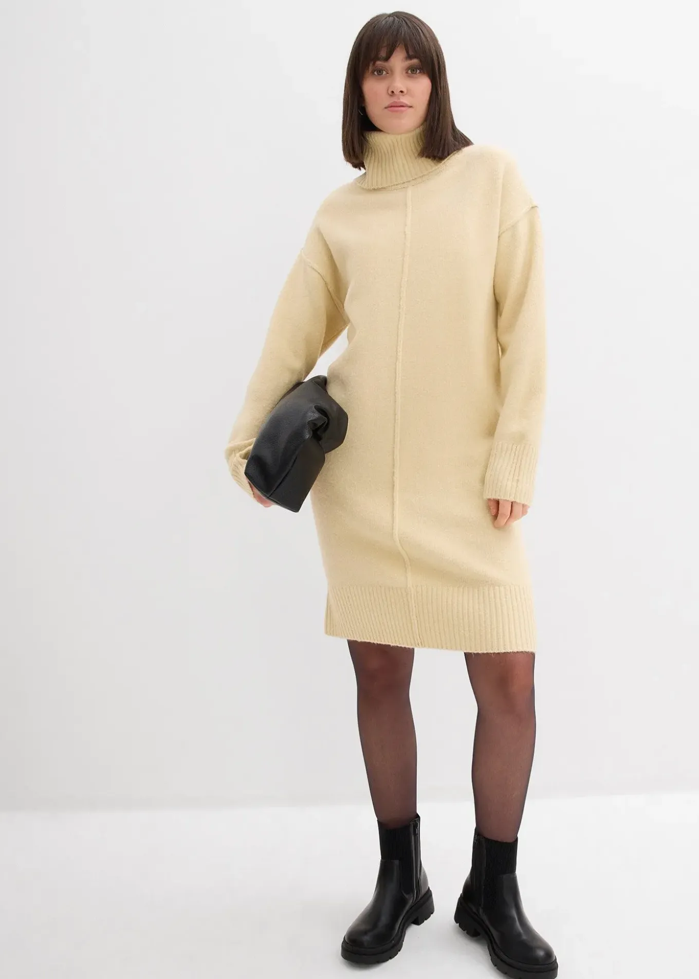 Robe en maille tendance à col roulé et couture décorative centrée devant