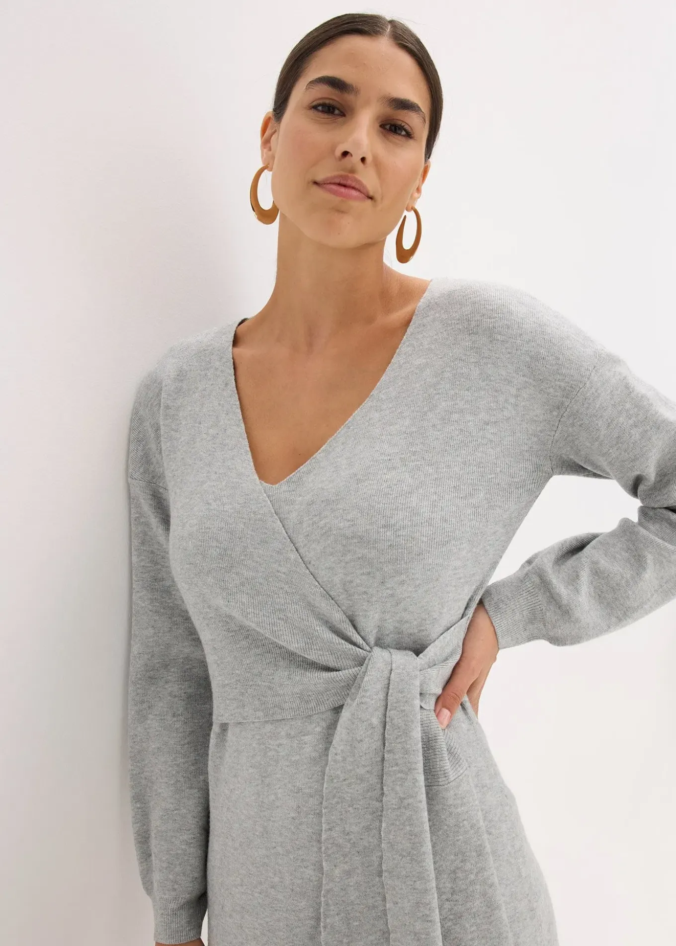 Robe courte style portefeuille en maille, col V