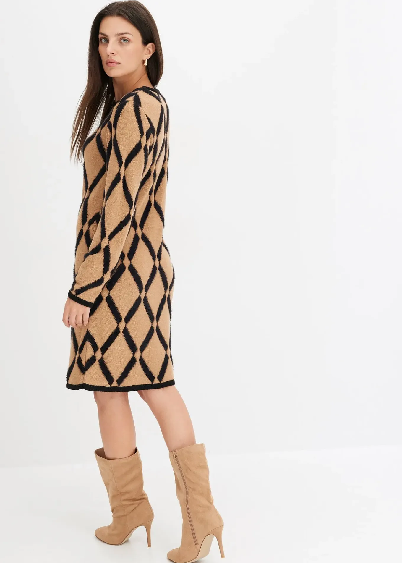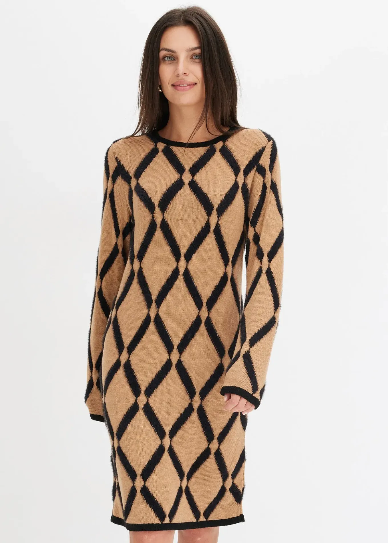 Robe chic en maille poilue avec motif en losange