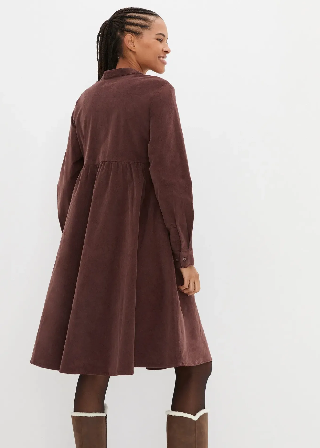 Robe décontractée en velours de coton côtelé avec col en V