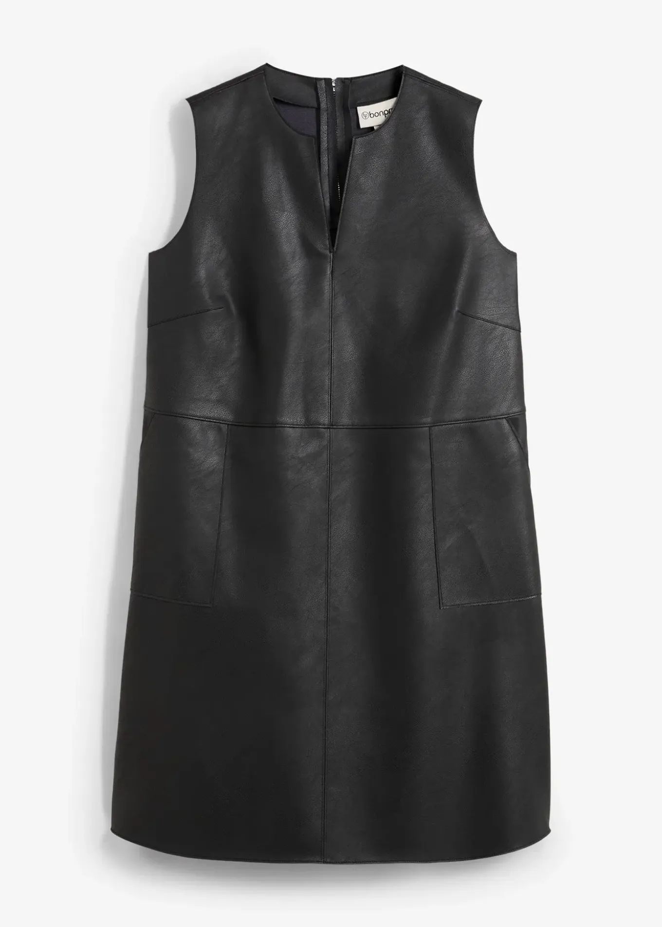 Robe chasuble enduite avec surpiqûres assorties, poches plaquées devant et fermeture zippée au dos