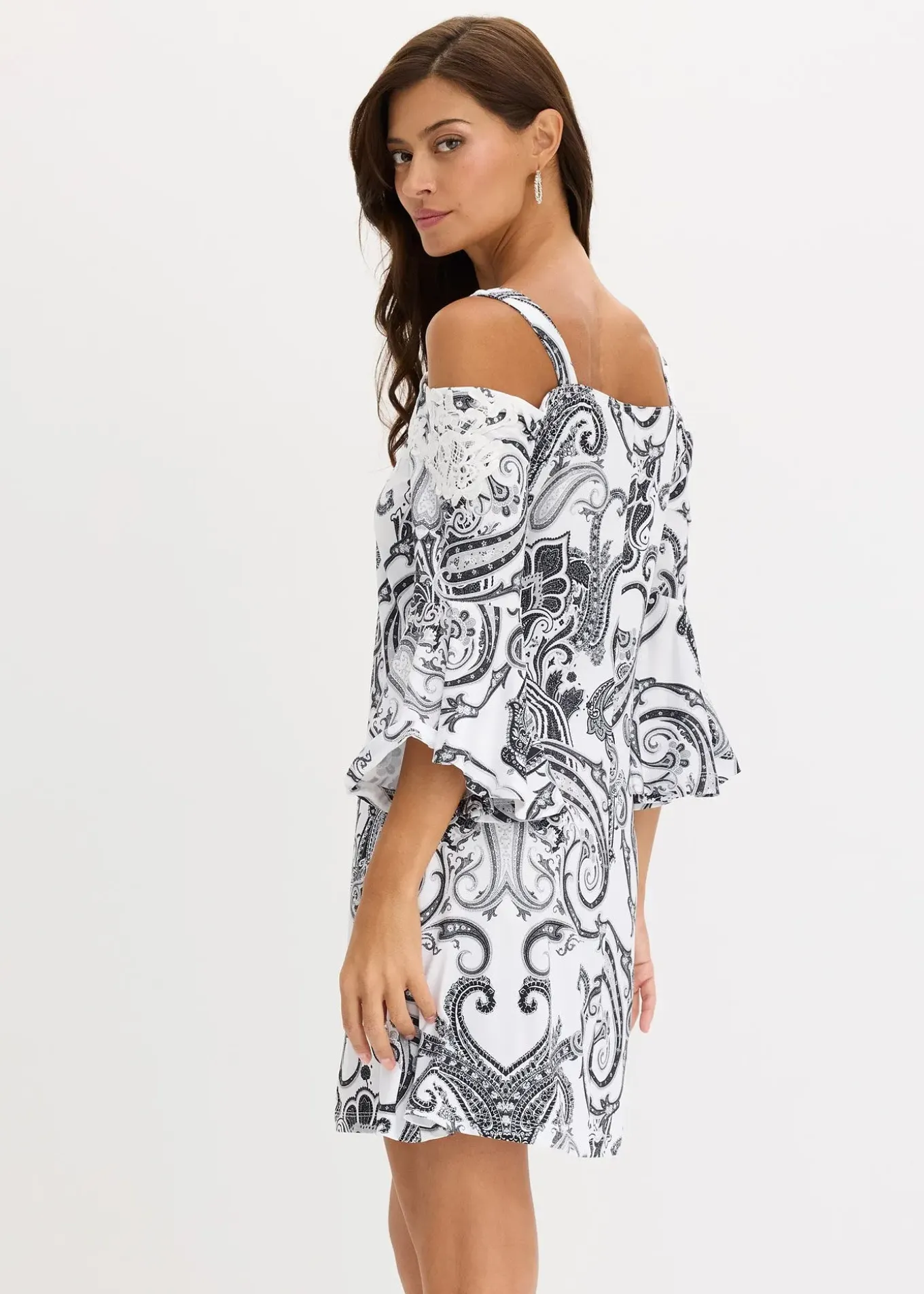 Robe courte fantaisie avec de fines bretelles et une belle coupe évasée à partir de la taille